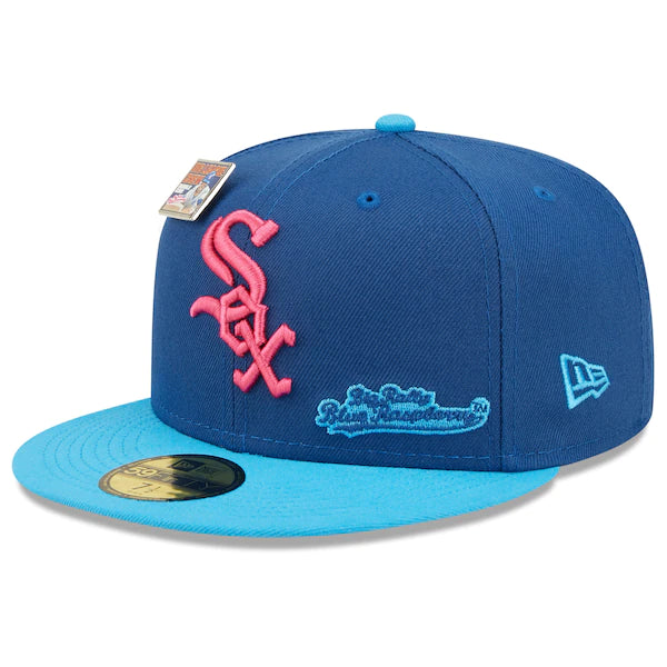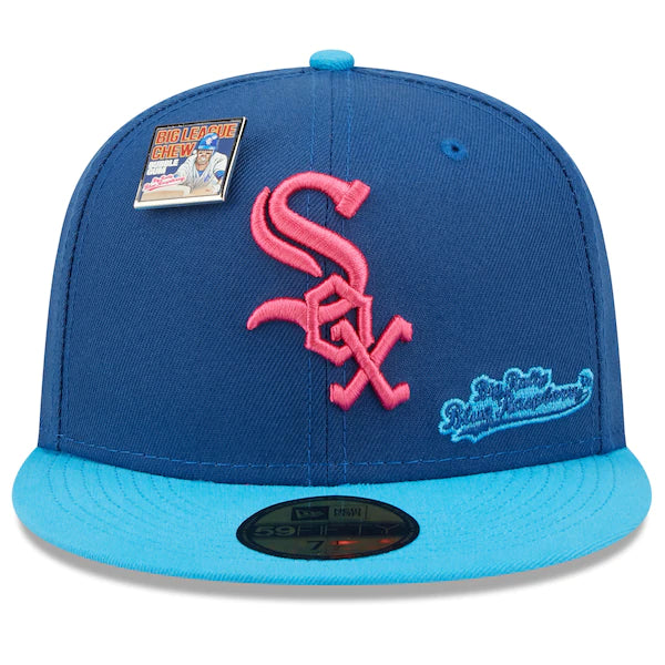 The MLB and Big League Chew have teamed up to bring Chicago White Sox fans this one of a kind, Big Rally Blue Raspberry Flavor Pack 59FIFTY Fitted Hat. Featuring a high crown and flat bill, this New Era hat will take your game day look to the next level. Its classic and fun graphics combine your Chicago White Sox and your all-time favorite Big League Chew flavor, making it unlike anything else in your collection.