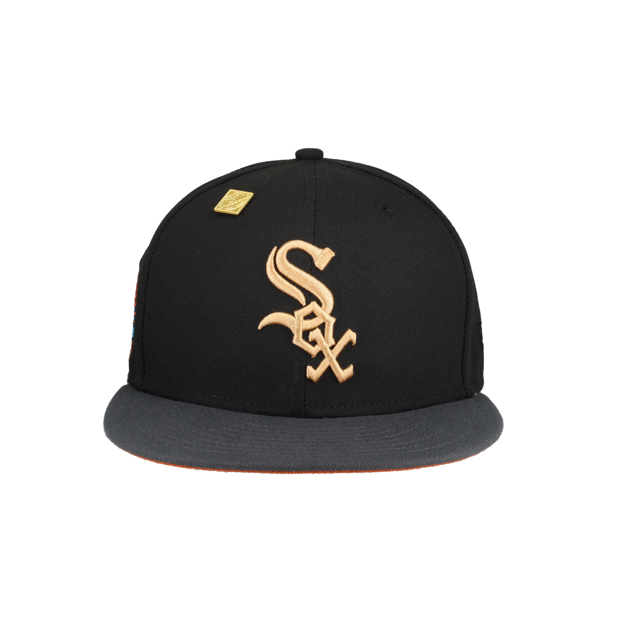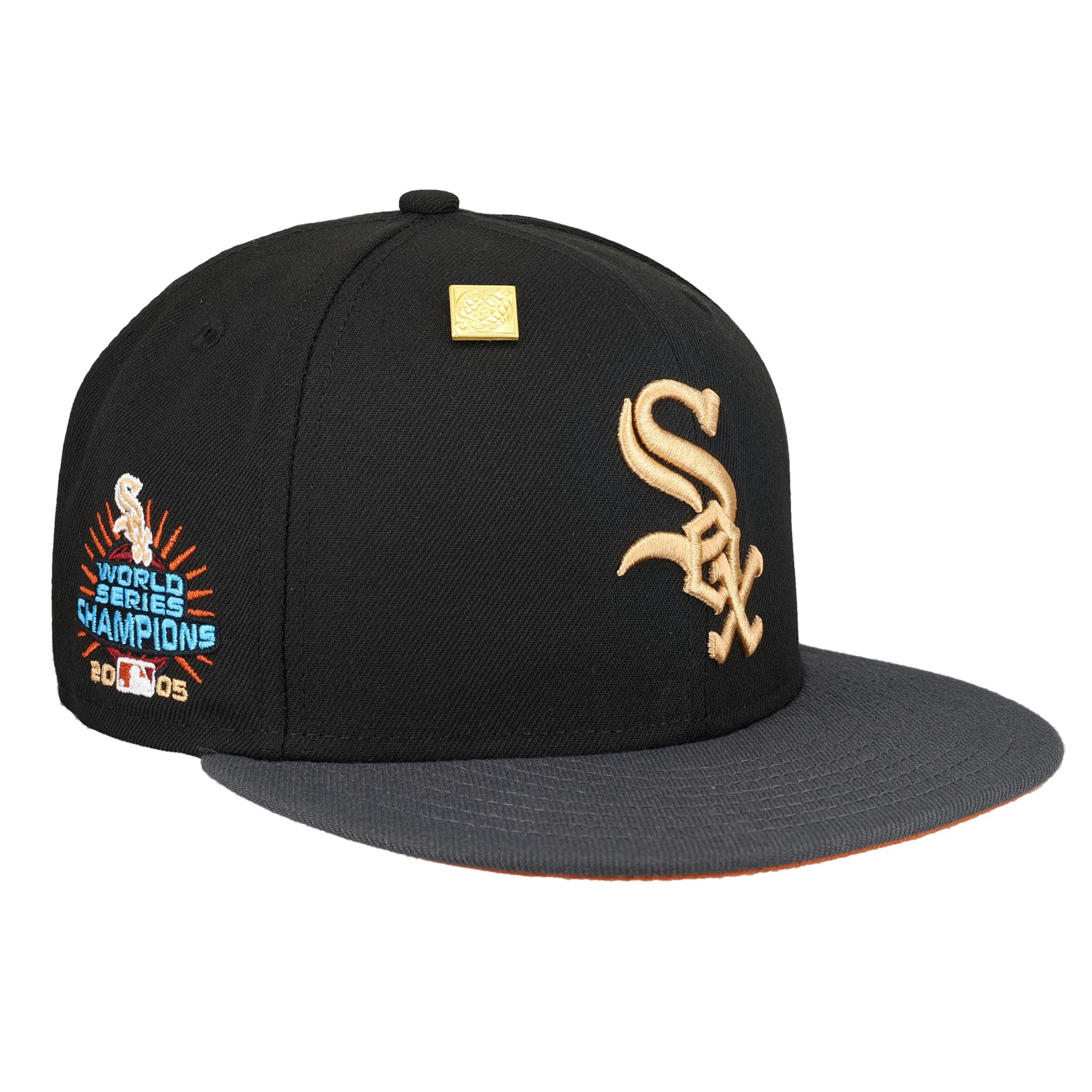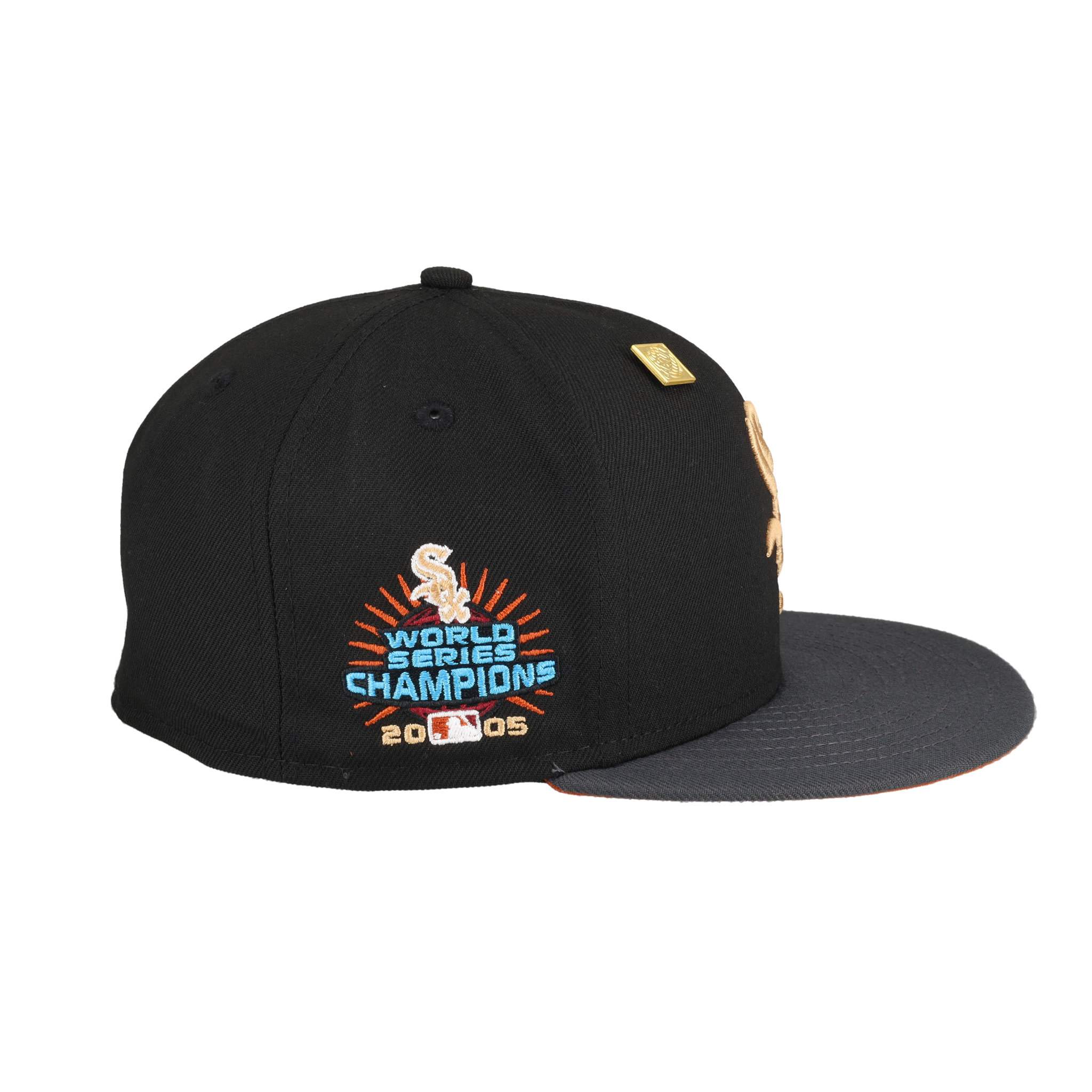 This New Era 59FIFTY Chicago White Sox 2005 World Series fitted hat was released by Capsule. The fitted features a black six panel structured high crown with a graphite visor and orange undervisor.