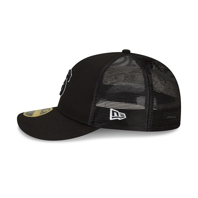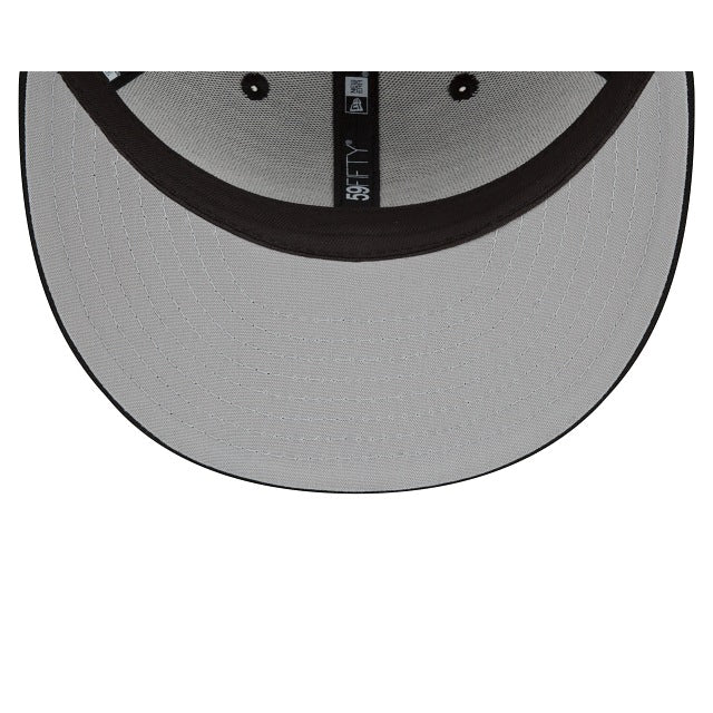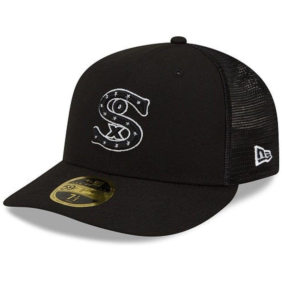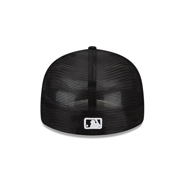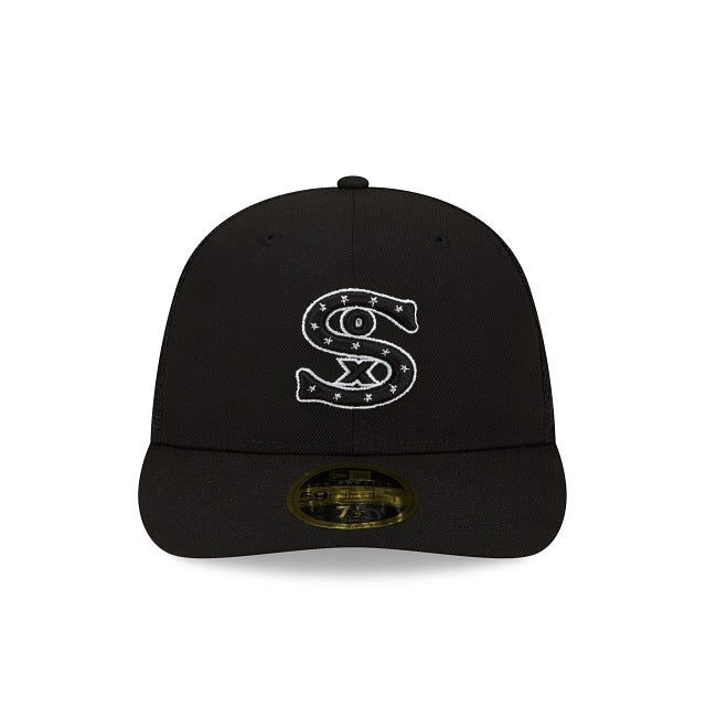 The Chicago White Sox 2023 Batting Practice Low Profile 59FIFTY Fitted Cap features an embroidered White Sox logo at the front panels with a matching MLB Batterman logo at the rear and a gray undervisor.