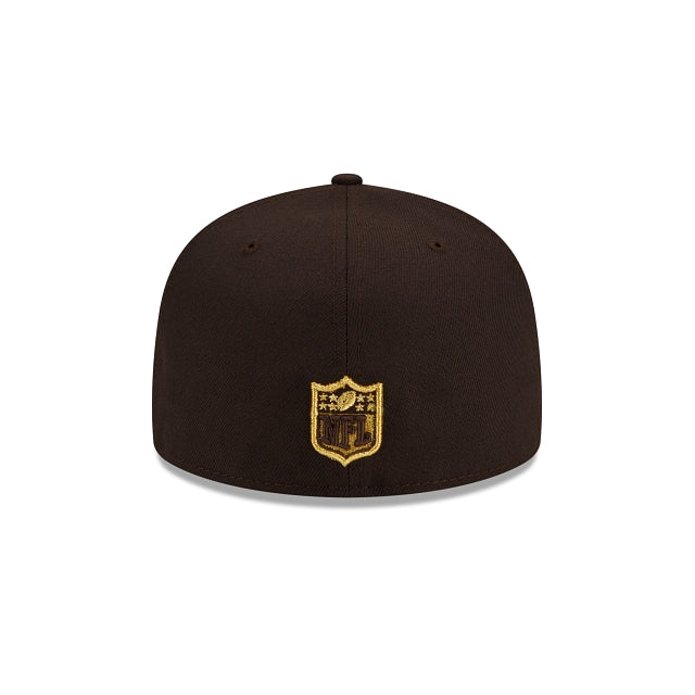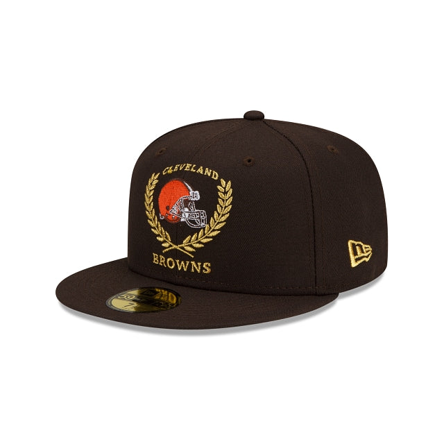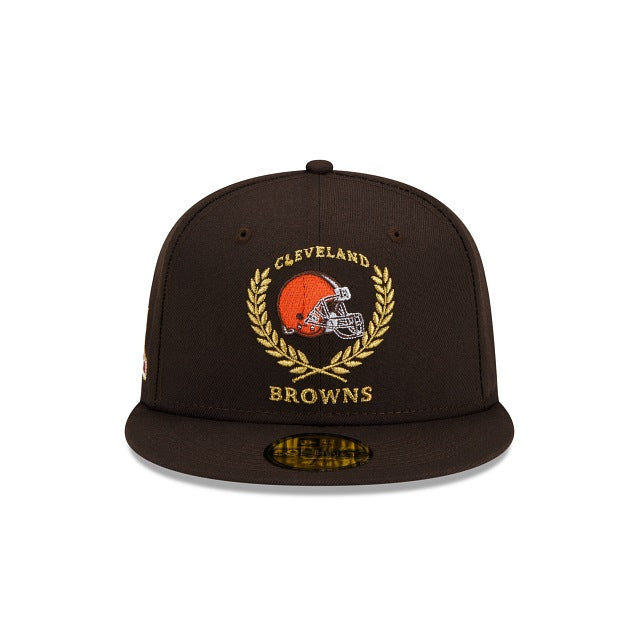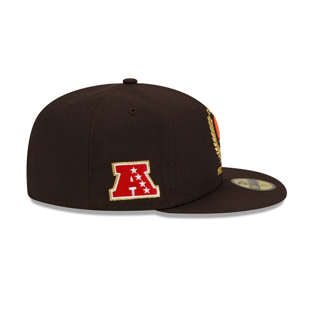 The Cleveland Browns Gold Classic 59FIFTY Fitted Cap features an embroidered Browns insignia at the front panels with a league specific patch at the right-wear side and the NFL Shield at the rear.