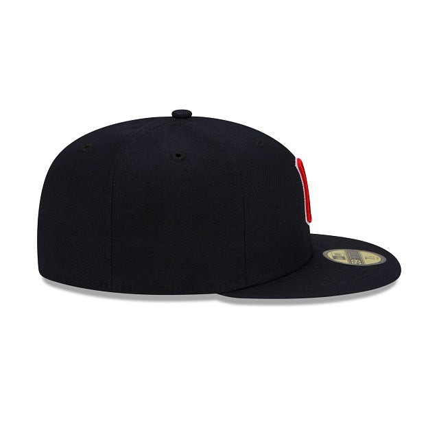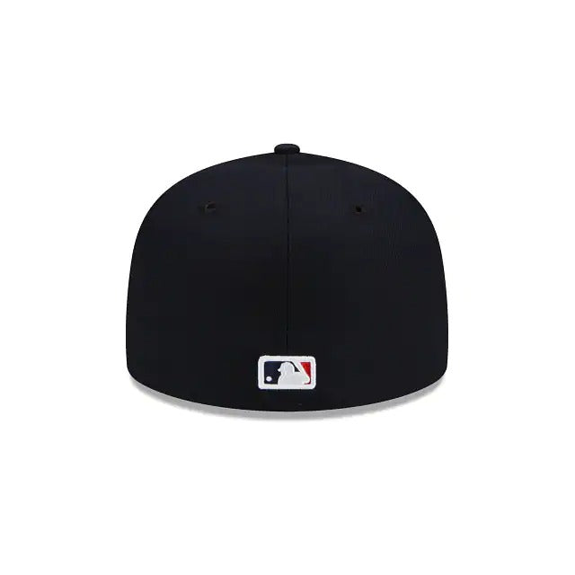 Wear what the players wear! The Cleveland Guardians Authentic Collection 59FIFTY Fitted Cap features a team color fabrication with an embroidered Guardians logo at the front panels and an MLB Batterman logo at the rear.