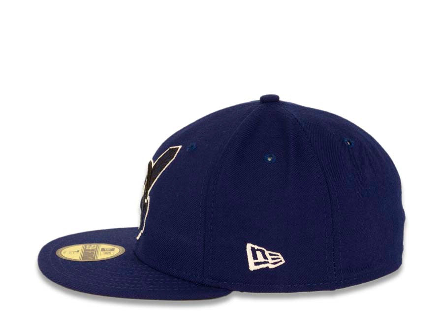 This New Era Cleveland Indians Royal Blue Chief Wahoo 59FIFTY Fitted Hat has a royal blue six panel structured high crown and embroidered eyelets with a royal blue fabric squatchee button. The fitted cap has a navy blue flat bill. The front panel features the Cleveland Indians former "Chief Wahoo" logo embroidery. The left panel of the fitted displays the New Era logo and the official MLB logo embroidery on the rear crown.