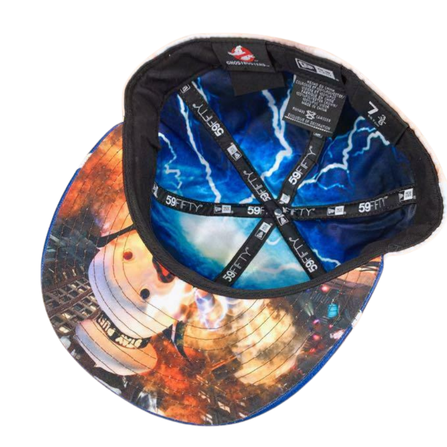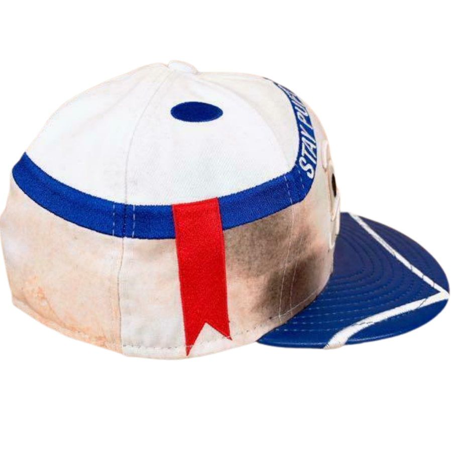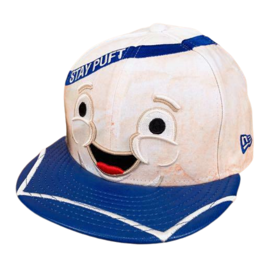 Recognize this familiar face? It's the marshmallow man. This New Era Stay-Puft Marshmallow Man fitted hat is a 3D design made too look like Mr. Stay-Puft head. The flat bill royal blue with white stripes with a unique graphic undervisor.