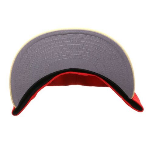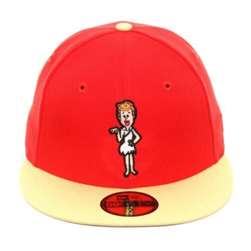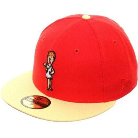 Yabba Dabba Doo! This New Era Wilma Flintstones fitted hat features a red and vanilla colorway. The six panel structure high crown and embroidered eyelets are red. The fabric squatchee button and flat bill of the fitted are vanilla with a grey bottom undervisor. The front panel features the wife Wilma Flintstones. Great collectors item.
