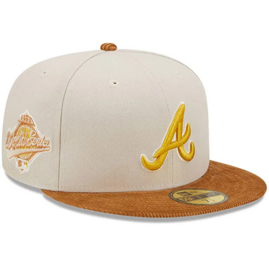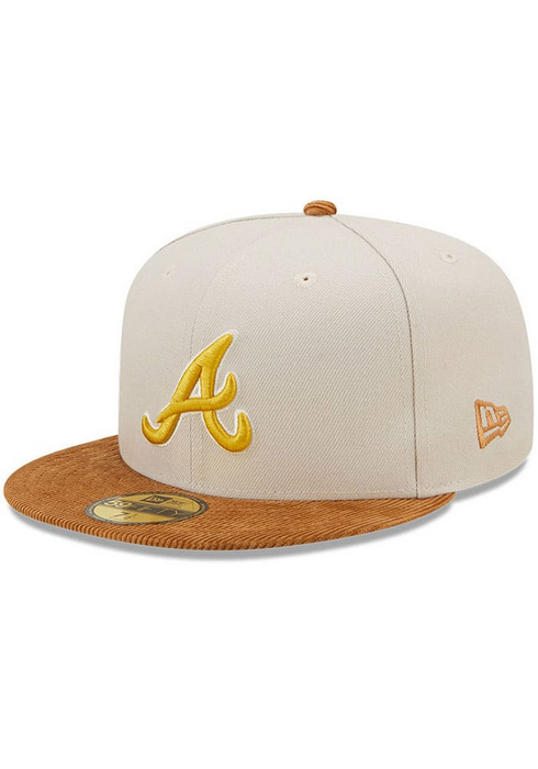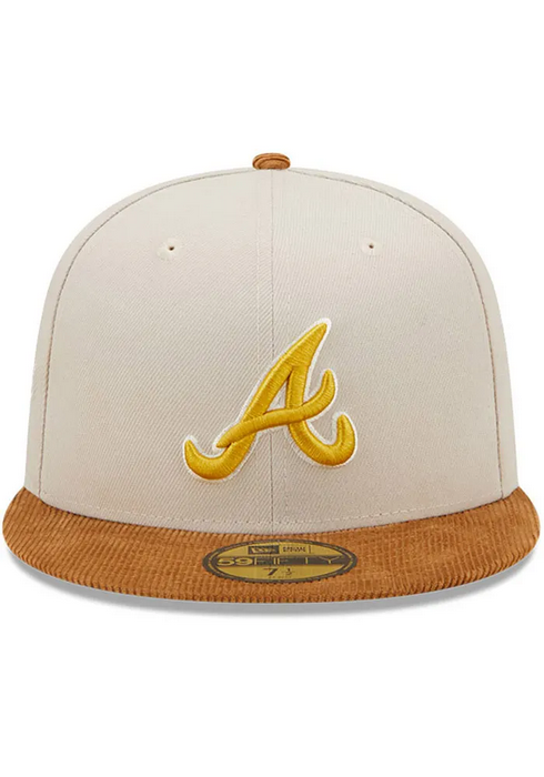 Highlight your appreciation for your Atlanta Braves in style by adding this bold 59FIFTY fitted hat from New Era to your gear collection. Atlanta Braves graphics embroidered on the front panels serve as a brilliant focal point in any spirited ensemble. The corduroy visor also offers a unique twist on your fandom, giving you a standout look that's sure to hit hard when it's go time.