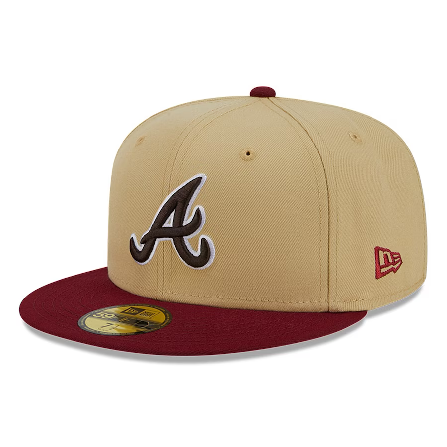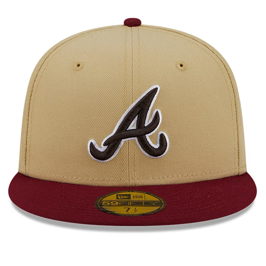 Add a distinctive touch to your team spirit with the Atlanta Braves Vegas Gold and Cardinal 59FIFTY hat by New Era. This hat showcases a raised embroidered team logo on the front crown and a patch on the right side panel. With its structured build, this fitted cap offers a secure and comfortable fit, making it ideal for all-day wear while cheering on the Atlanta Braves.