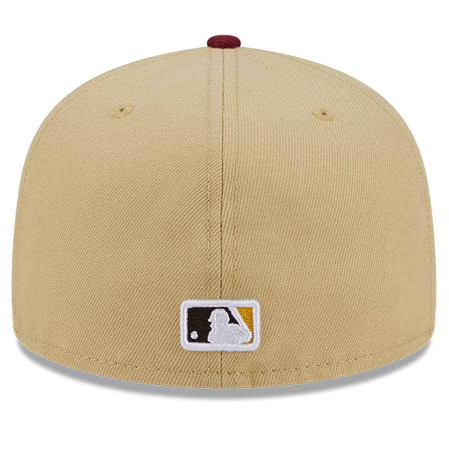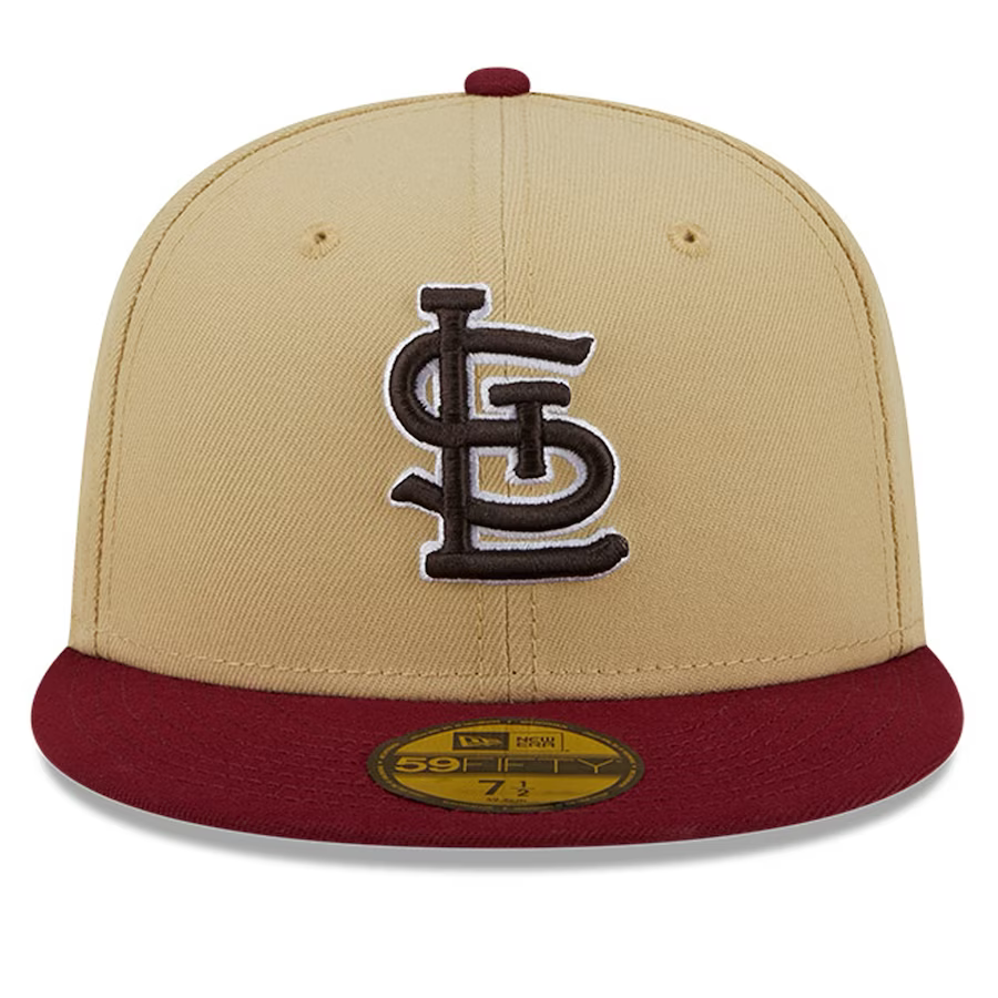 Add a distinctive touch to your team spirit with the St. Louis Cardinals Vegas Gold and Cardinal 59FIFTY hat by New Era. This hat showcases a raised embroidered team logo on the front crown and a patch on the right side panel. With its structured build, this fitted cap offers a secure and comfortable fit, making it ideal for all-day wear while cheering on the St. Louis Cardinals.