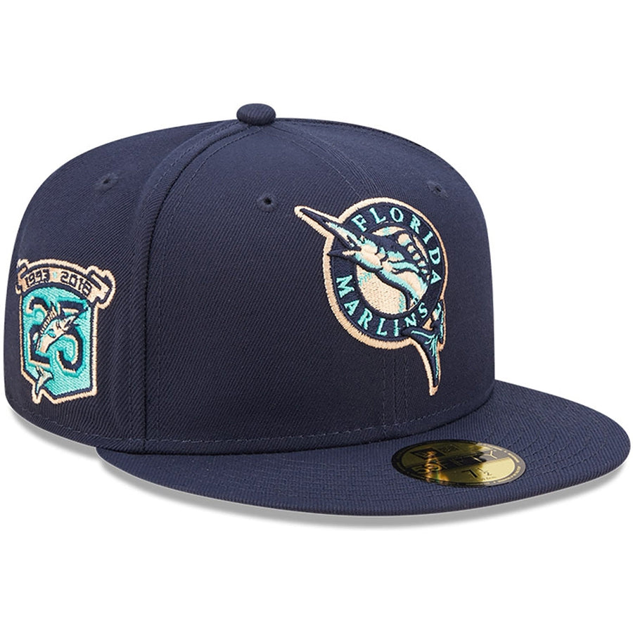 Lids Hat Drop is excited to bring unique and exclusive colorways to your favorite MLB team. This New Era Florida Marlins 59FIFTY is a high crown hat is structured with a flat rounded bill, threaded rivets, and a team patch to highlight the achievements. Find the look that fits your collection or wardrobe.