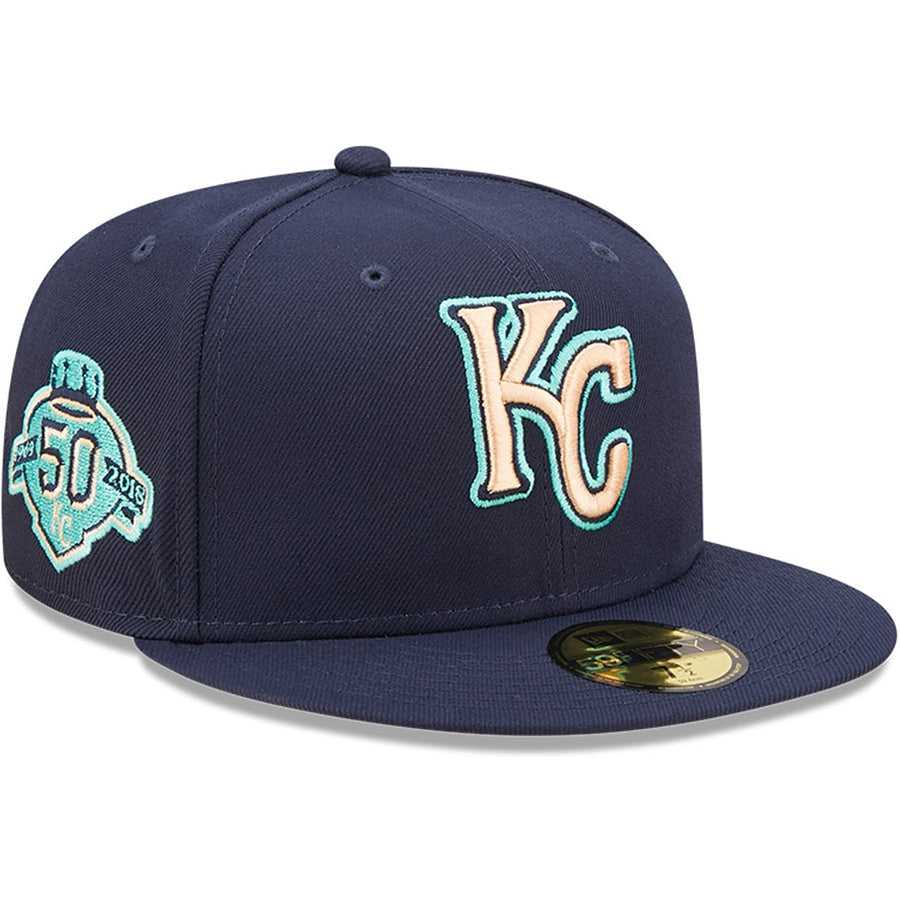 Lids Hat Drop is excited to bring unique and exclusive colorways to your favorite MLB team. This New Era Kansas City Royals 59FIFTY is a high crown hat is structured with a flat rounded bill, threaded rivets, and a team patch to highlight the achievements. Find the look that fits your collection or wardrobe.