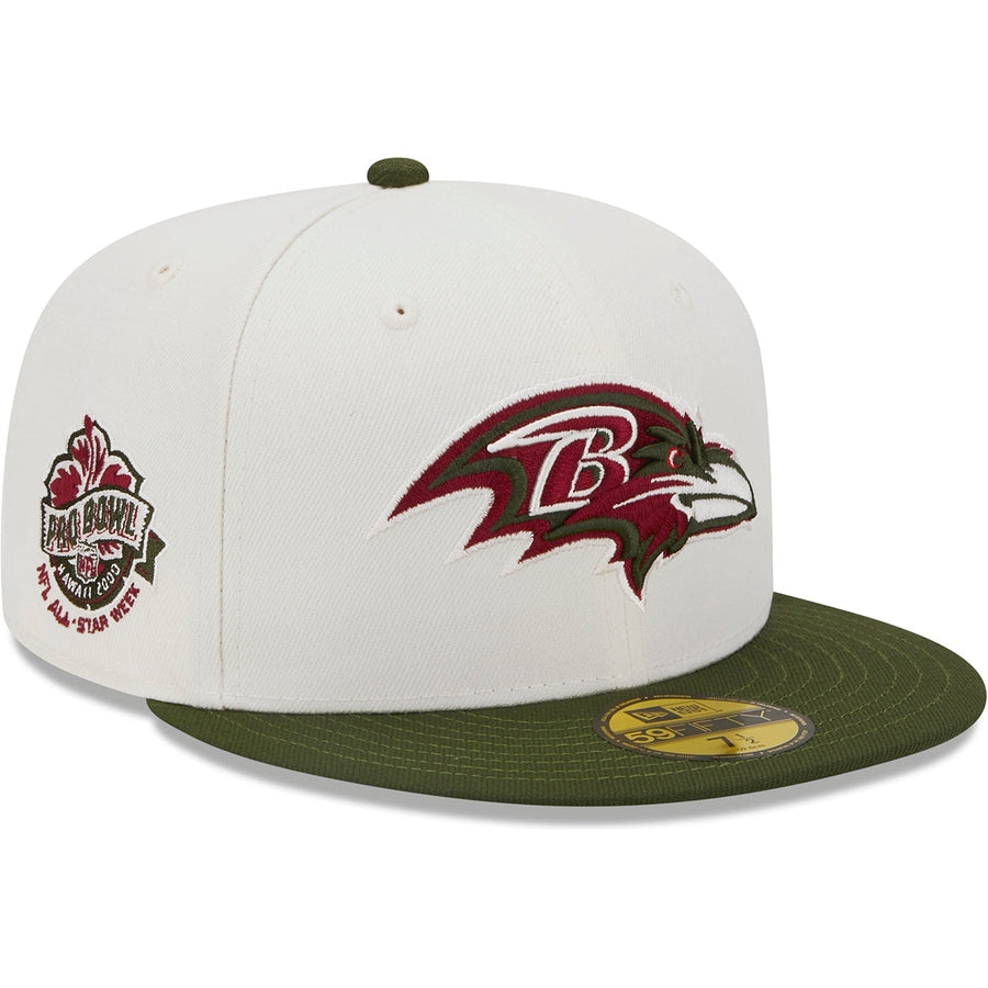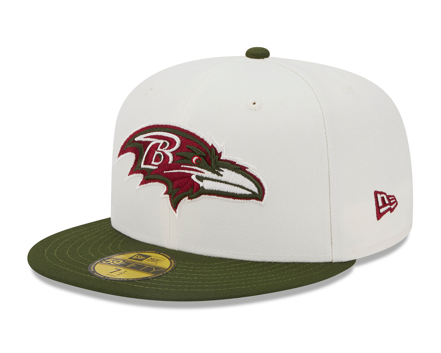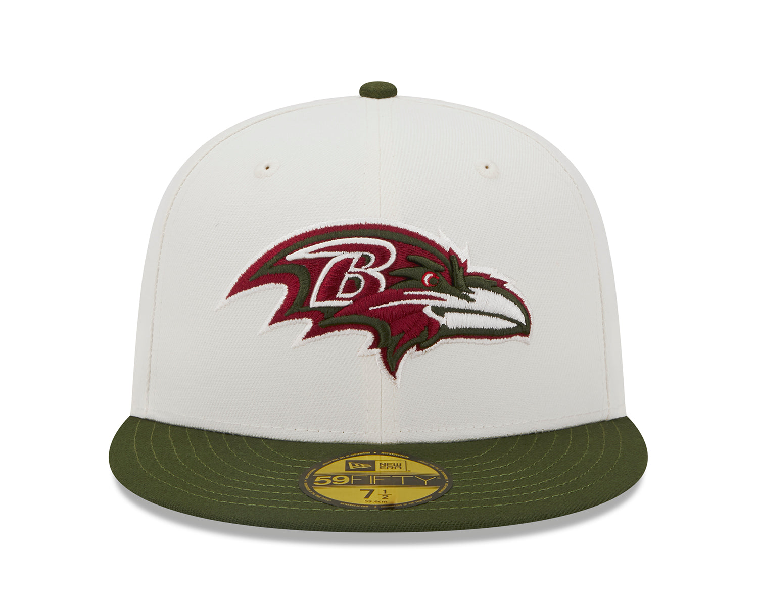 Lids Hat Drop is excited to bring unique and exclusive colorways to your favorite NFL team. This New Era Baltimore Ravens Olive Branch 59FIFTY Cap is a high crown hat is structured with a flat rounded bill, threaded rivets, and a team patch to highlight the achievements. Find the look that fits your collection or wardrobe.