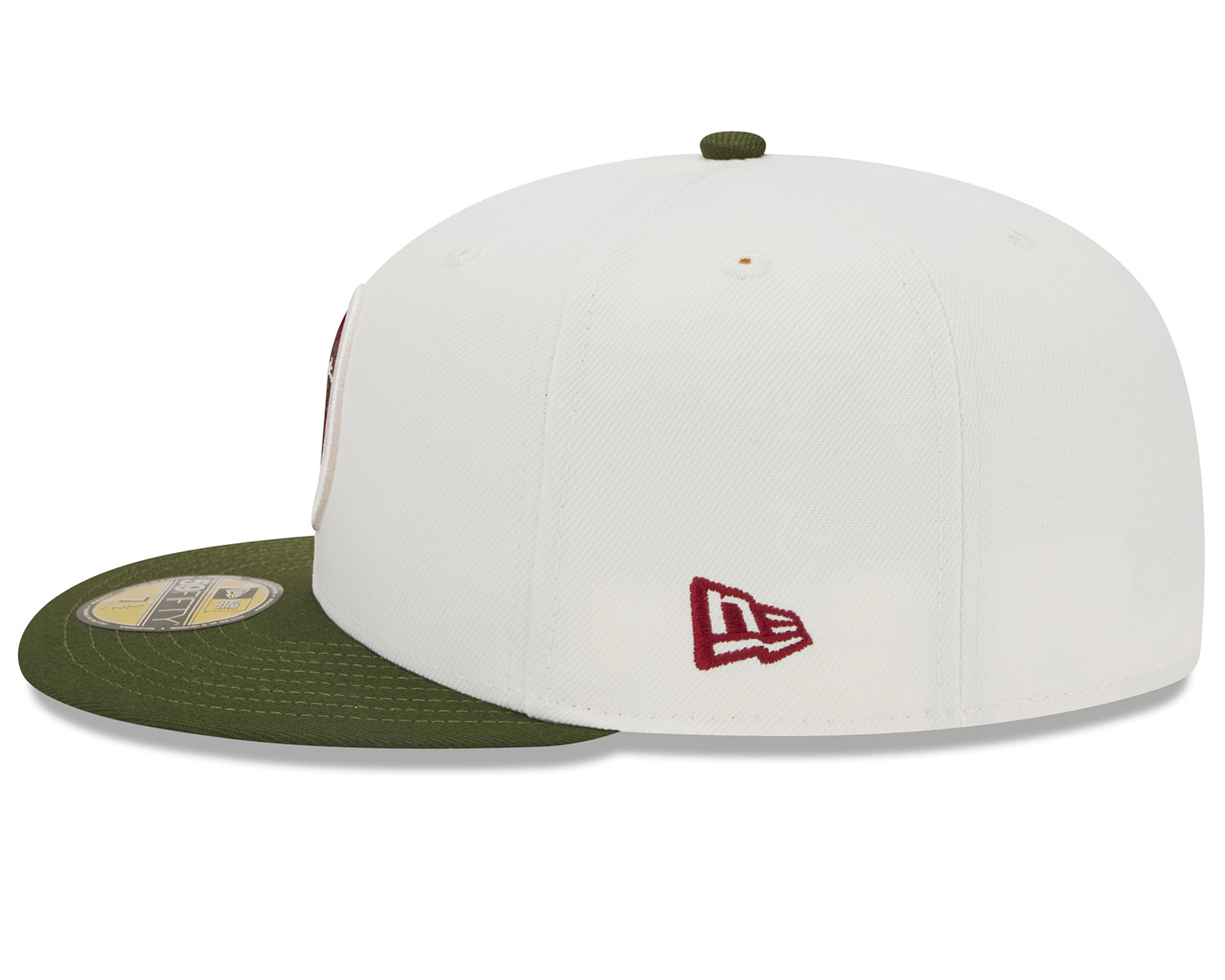 Lids Hat Drop is excited to bring unique and exclusive colorways to your favorite NFL team. This New Era Denver Broncos Olive Branch 59FIFTY Cap is a high crown hat is structured with a flat rounded bill, threaded rivets, and a team patch to highlight the achievements. Find the look that fits your collection or wardrobe.