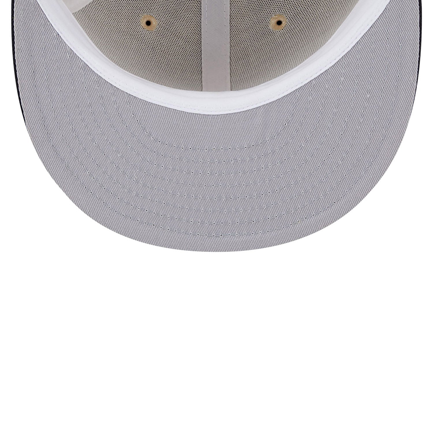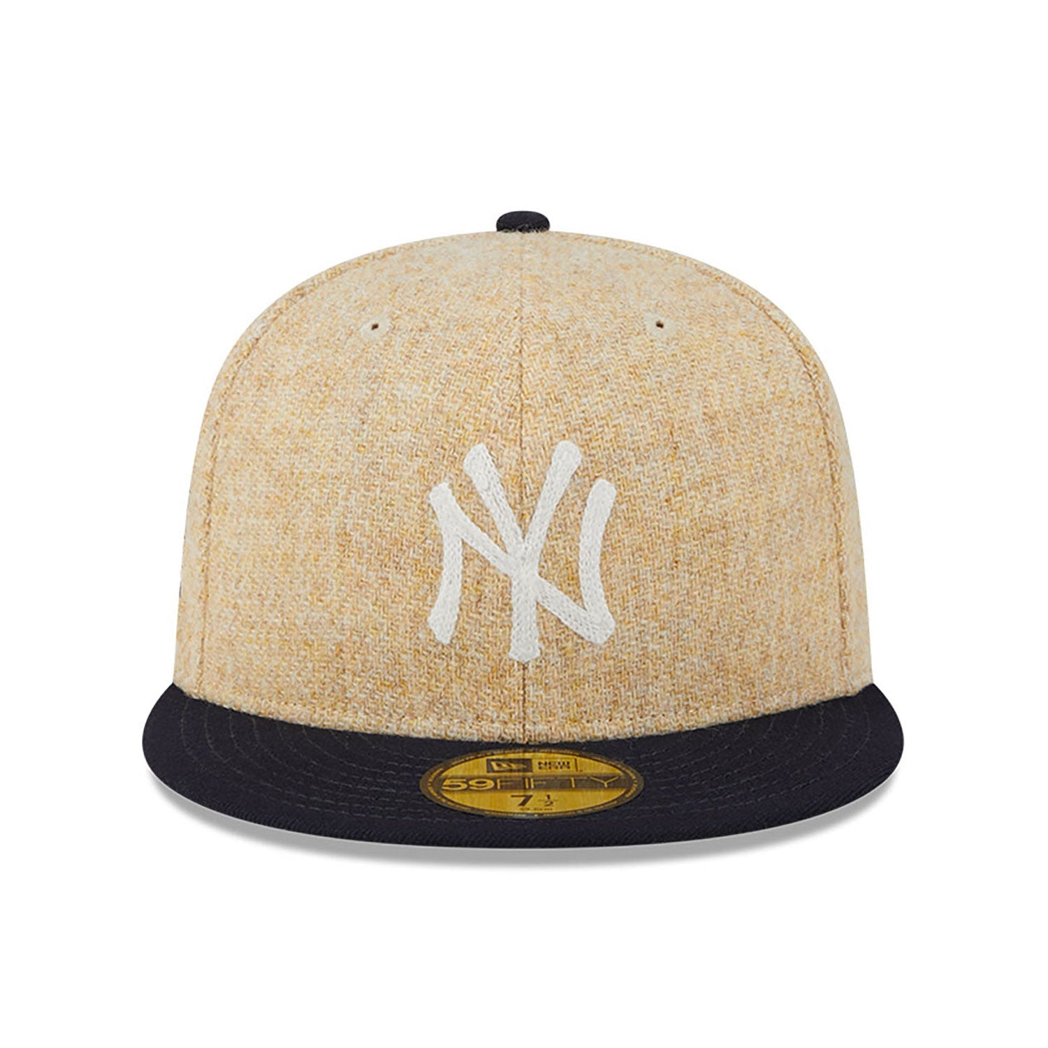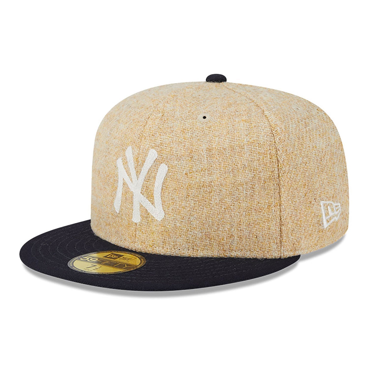 This New York Yankees fitted hat was released by FAM. The fitted has a tweed six panel structured high crown and embroidered eyelets with a black fabric squatchee button. The flat bill of the cap is black with a grey undervisor and white sweatband. The front panel features the New York Yankees logo embroidery and a side patch embroidery on the right panel. The left panel of the fitted displays the New Era logo and the official MLB Batterman logo embroidery on the rear crown.