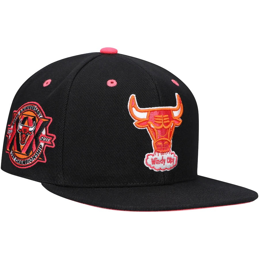 Complete your game day getup with this fresh Hardwood Classics Sunset hat from the Mitchell & Ness x Lids collection. Featuring a trendy high crown, this cap's bold Chicago Bulls embroidery on the front panels puts your fandom front and center. Plus, the commemorative 1991 First Championship 20th Anniversary patch on the side shows you're more than an average fan. The structured construction and fitted closure ensure a comfortable fit and feel as you enjoy all of the Chicago Bulls action.