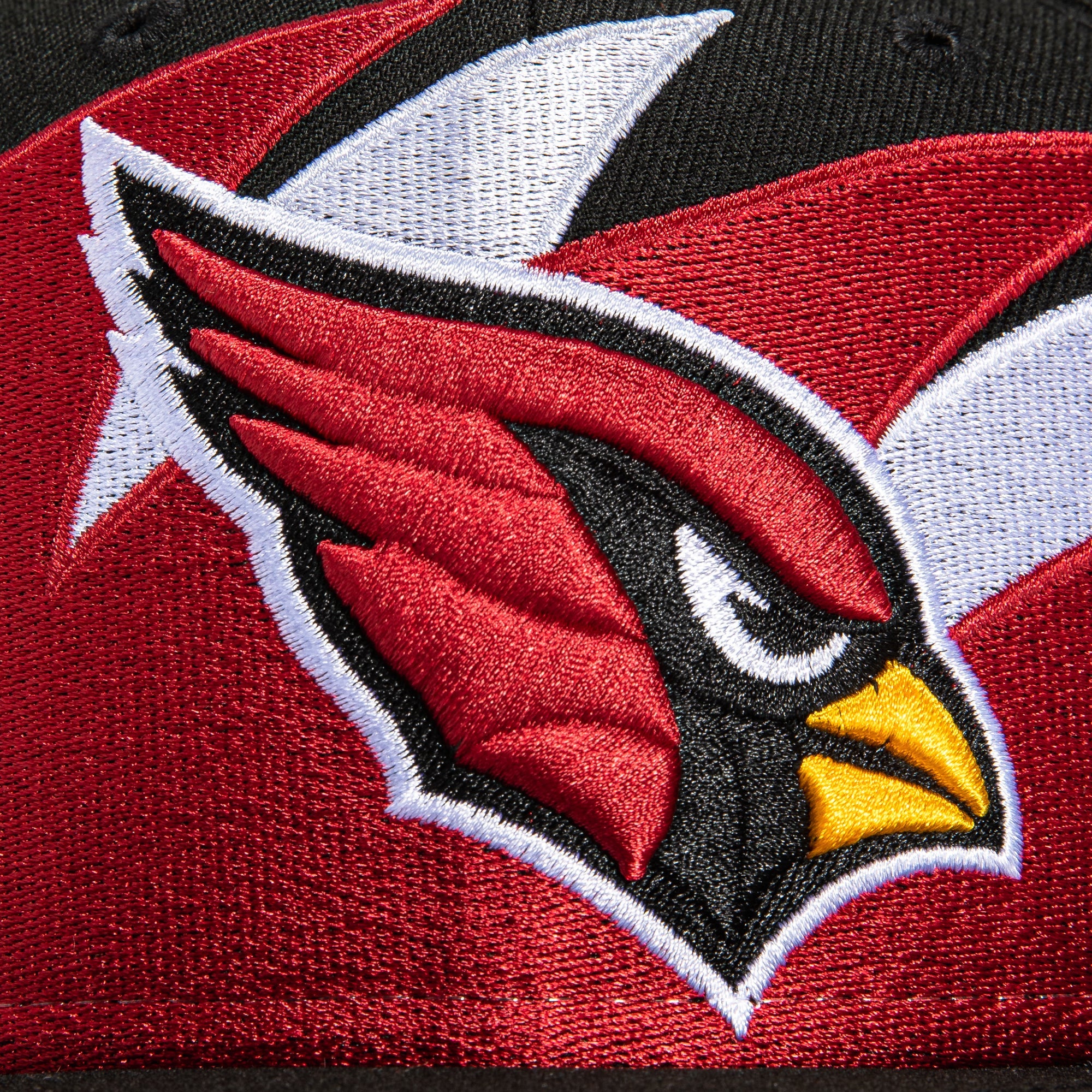 This New Era Arizona Cardinals SharkTooth 1994 Pro Bowl 59FIFTY Fitted Hat was released by Hat Club. The fitted has a black six panel structured high crown, fabric squatchee button and brim with a grey undervisor. The front panel features a shark tooth pattern with the Arizona Cardinals logo embroidery. The left panel includes the New Era logo embroidery and the official NFL shield on the rear crown.