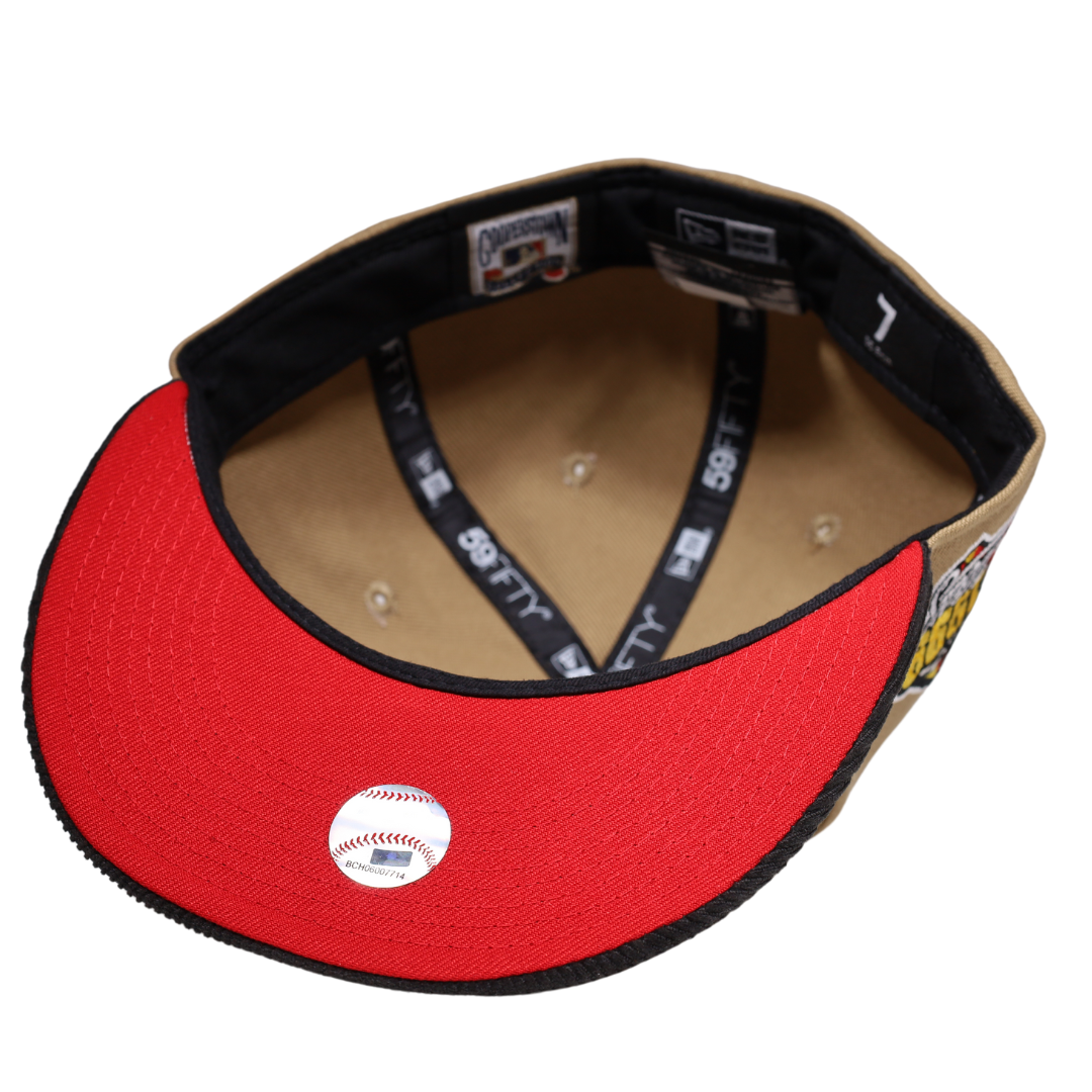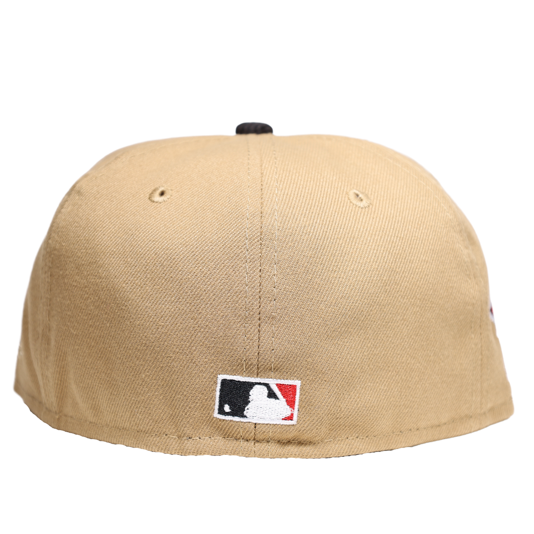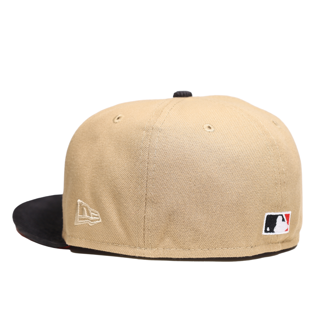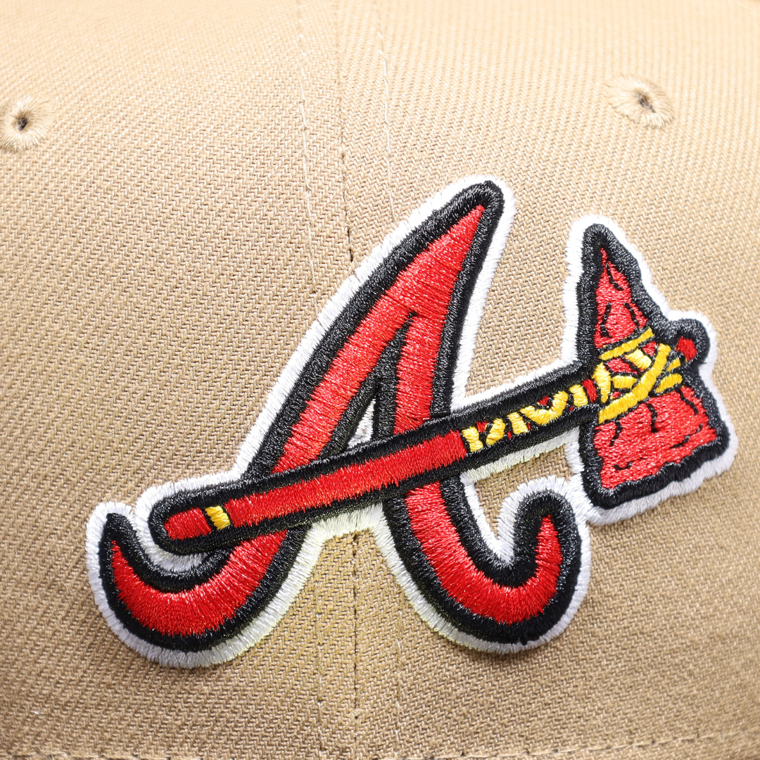 This New Era Atlanta Braves 1999 World Series 59FIFTY Fitted Hat has a six panel structured high crown and embroidered eyelets with a fabric squatchee button. The fitted cap has a flat bill with a sweatband. The front panel features the Atlanta Braves logo embroidery.