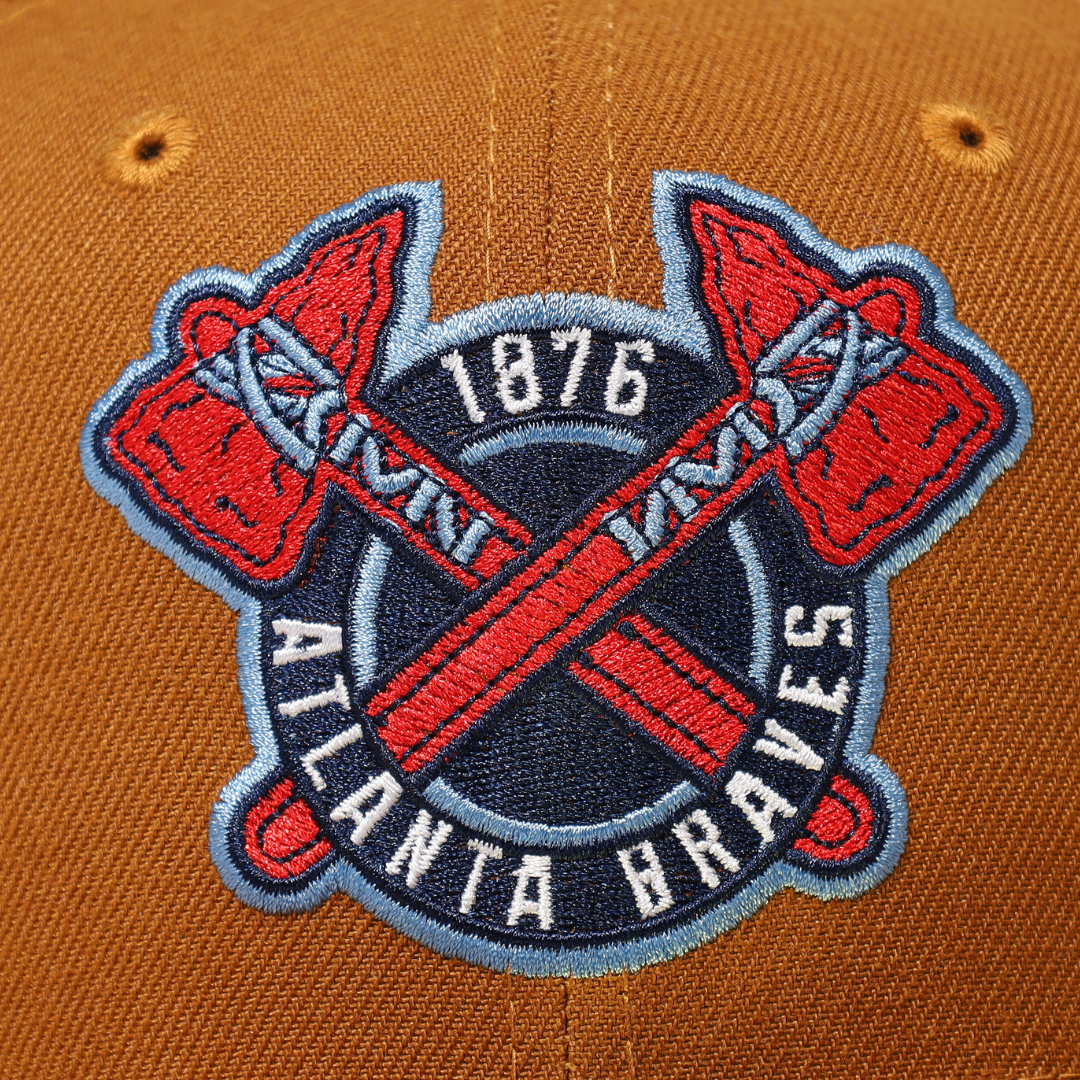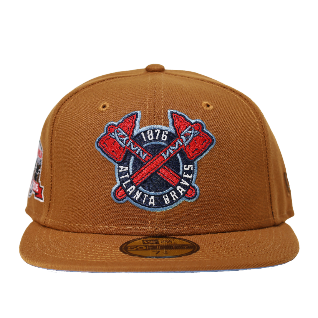 This New Era Atlanta Braves Turner Field Final Season 59FIFTY Fitted Hat has a six panel structured high crown and embroidered eyelets with a fabric squatchee button. The fitted cap has a flat bill with a sweatband. The front panel features the Atlanta Braves logo embroidery.