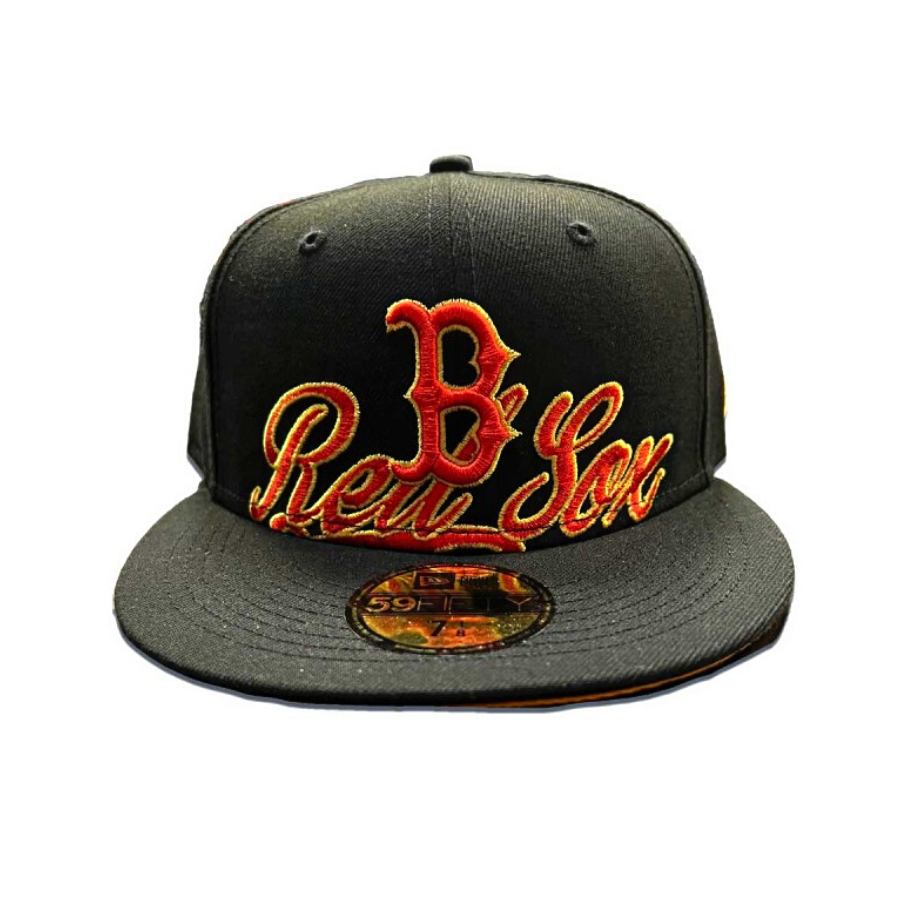 New Era Boston Red Sox Black/Orange Logo Script 59FIFTY Fitted Hat