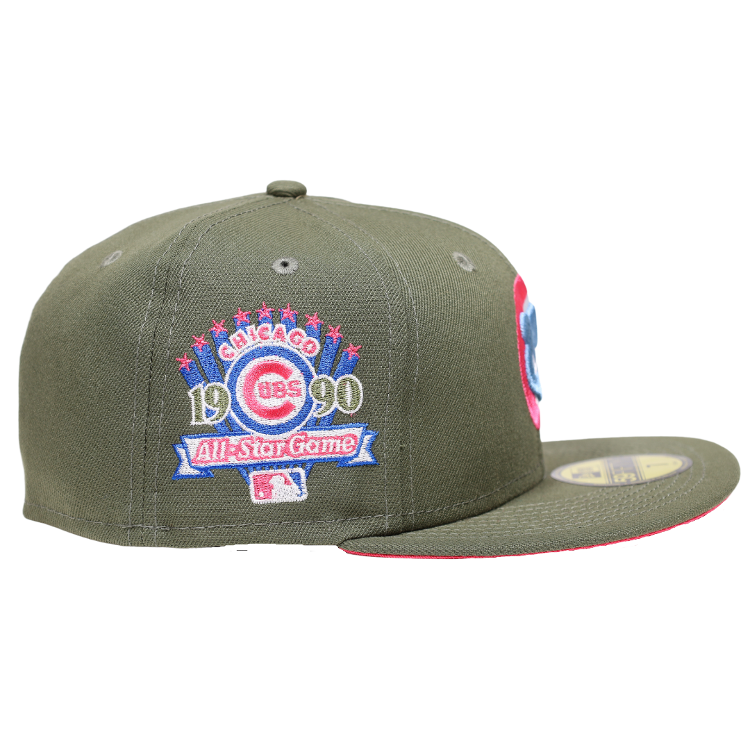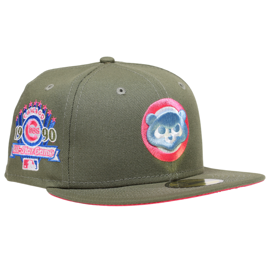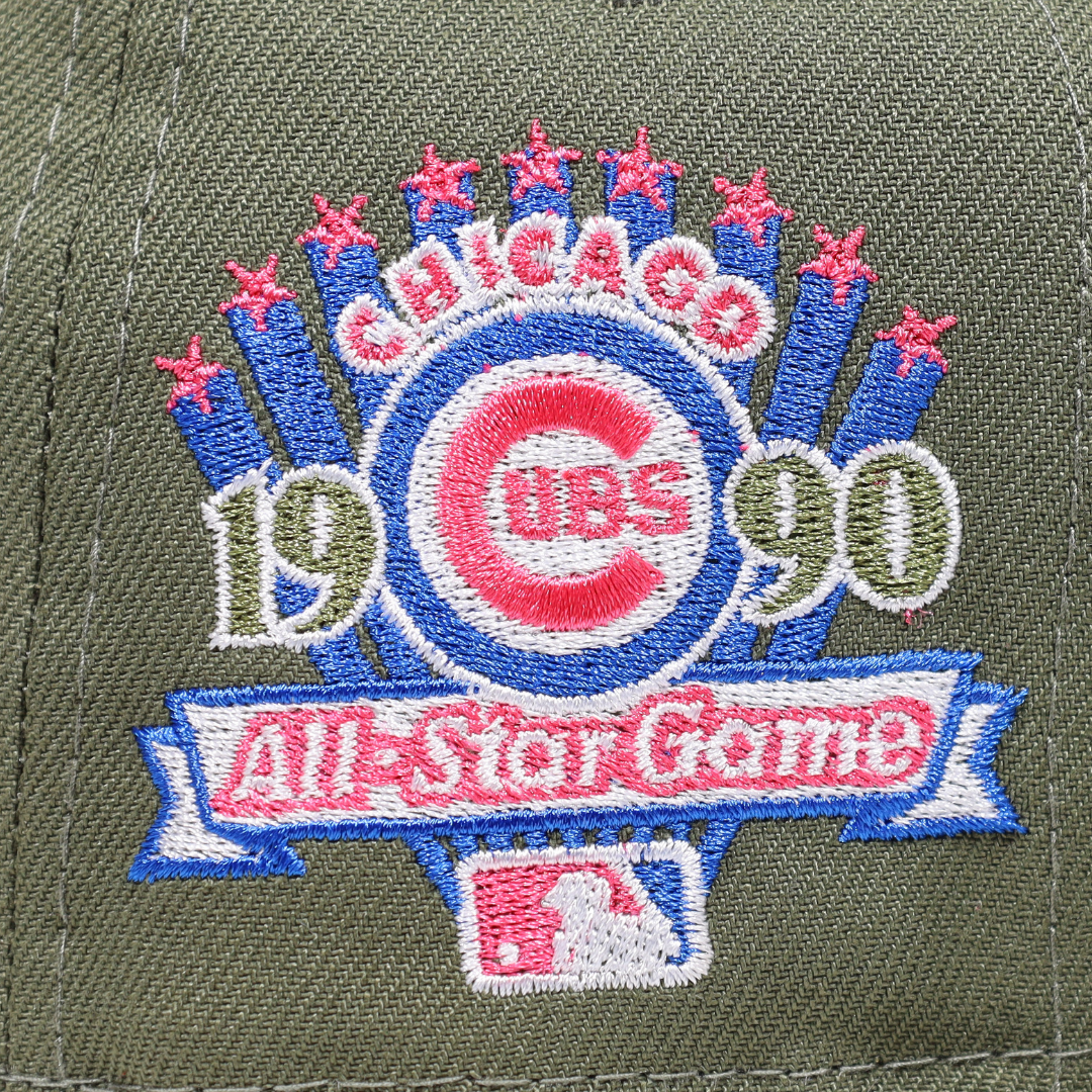 This New Era Chicago Cubs 1990 All-Star Game 59FIFTY Fitted Hat has a six panel structured high crown and embroidered eyelets with a fabric squatchee button. The fitted cap has a flat bill with a sweatband. The front panel features the Chicago Cubs logo embroidery.