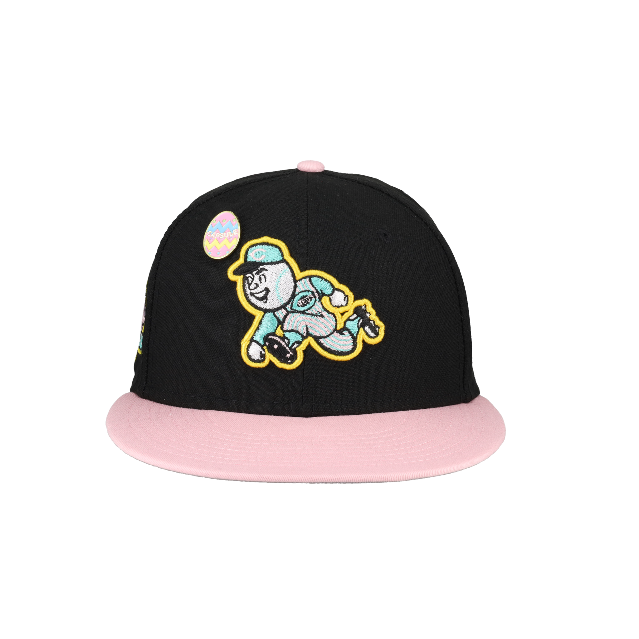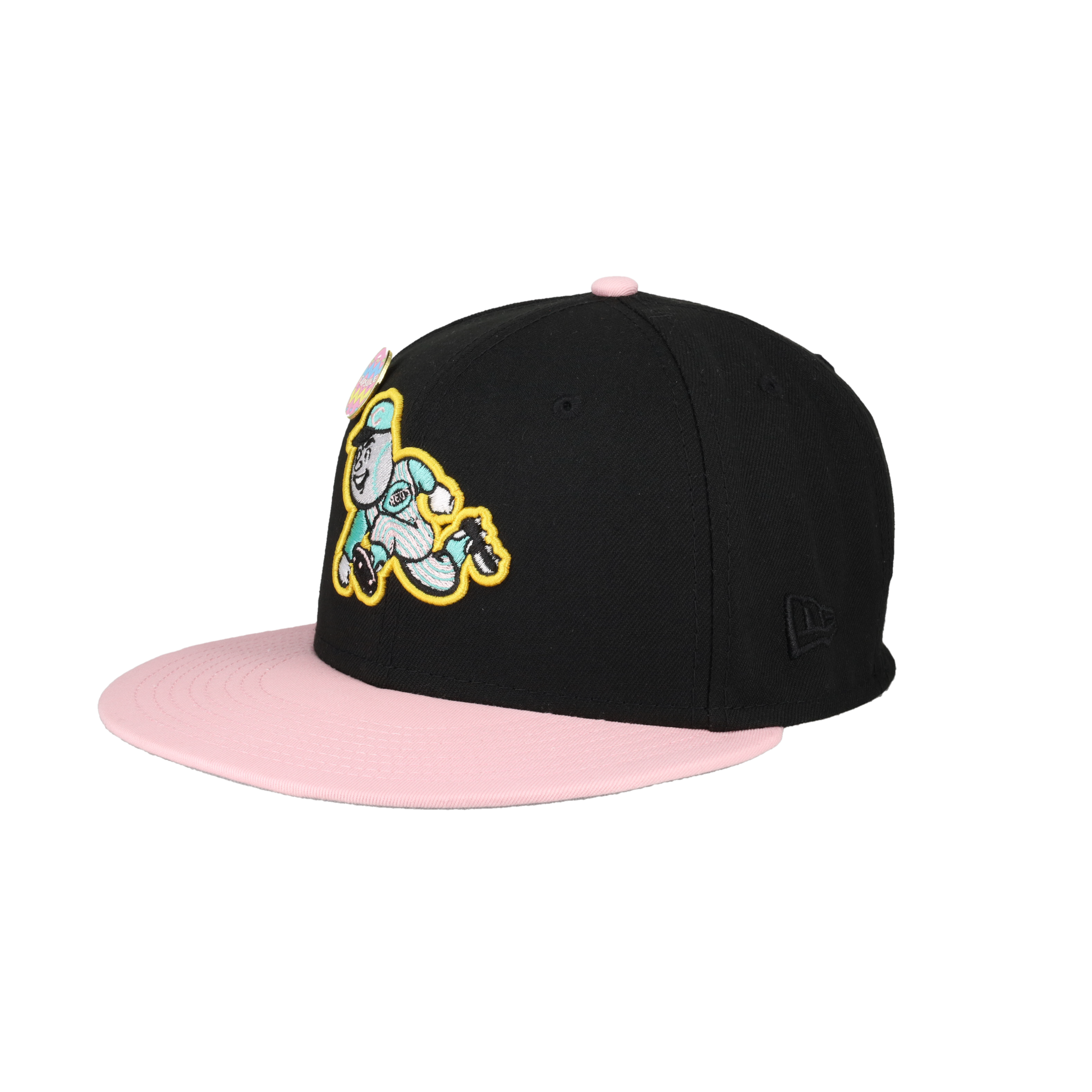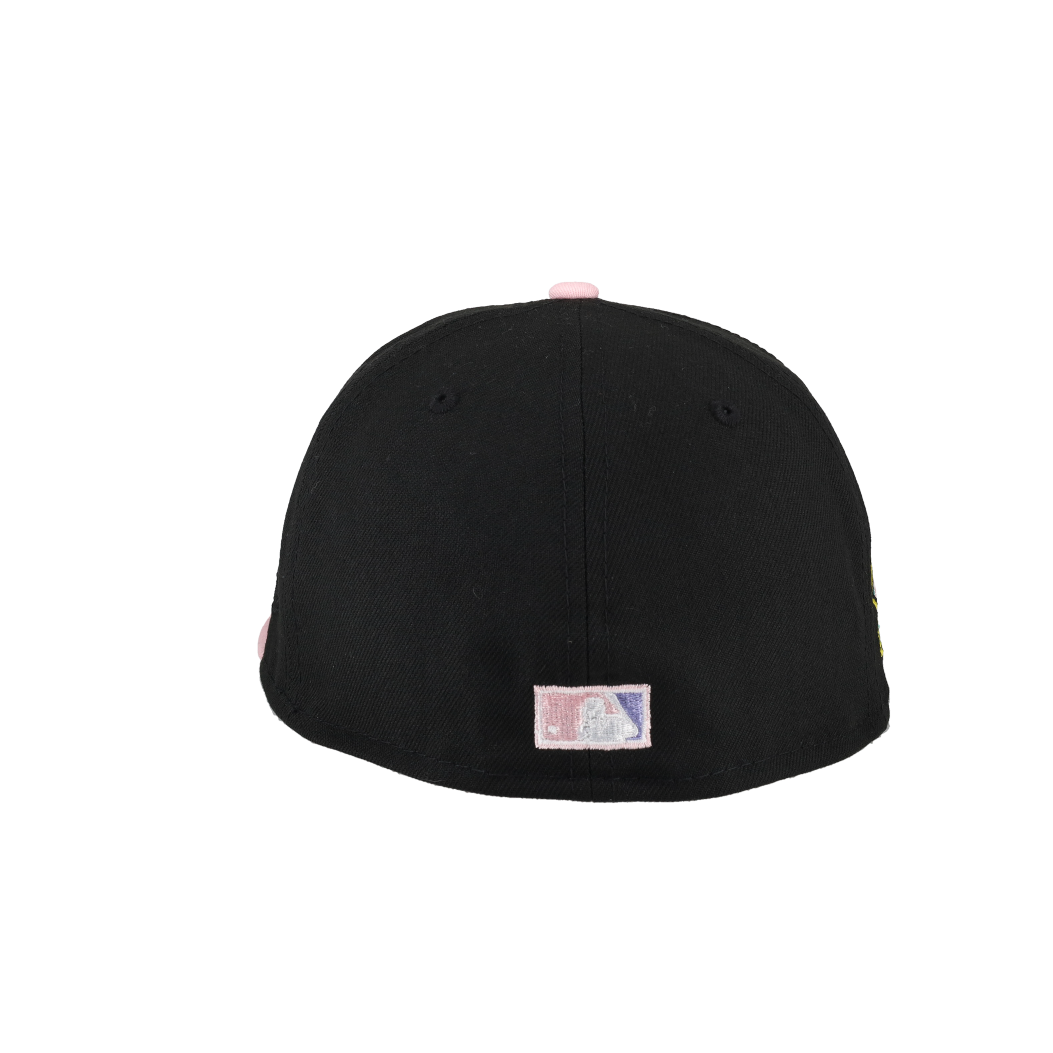 This New Era Cincinnati Reds Easter 1970-2002 Patch 2023 59FIFTY Fitted Hat was released by Capsule. The fitted has a black six panel structured high crown and embroidered eyelets with a pink fabric squatchee button. The flat bill of the fitted cap is pink with a grey undervisor and a black sweatband. The front panel features the Cincinnati Reds logo embroidery with a 1970-2002 side patch on the right panel. The left panel of the fitted displays the New Era logo and the official MLB Batterman logo on the rear-crown .