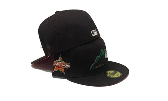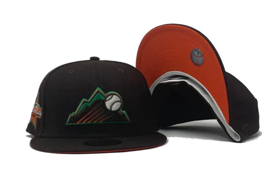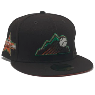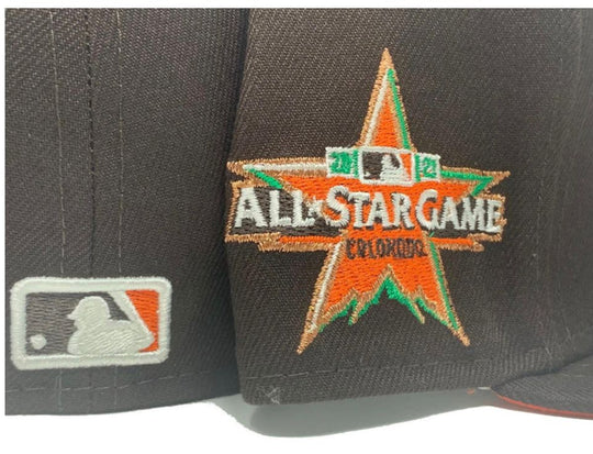 This New Era Colorado Rockies 2021 All-Star Game “Autumn Collection” 59FIFTY fitted hat is a Sports World 165 exclusive release. The fitted has a deep brown six panel construction with an orange undervisor and white sweatband. The front panel features the Colorado Rockies logo embroidered in green, orange and black threads with a matching tone 2021 ASG side patch on the right panel.