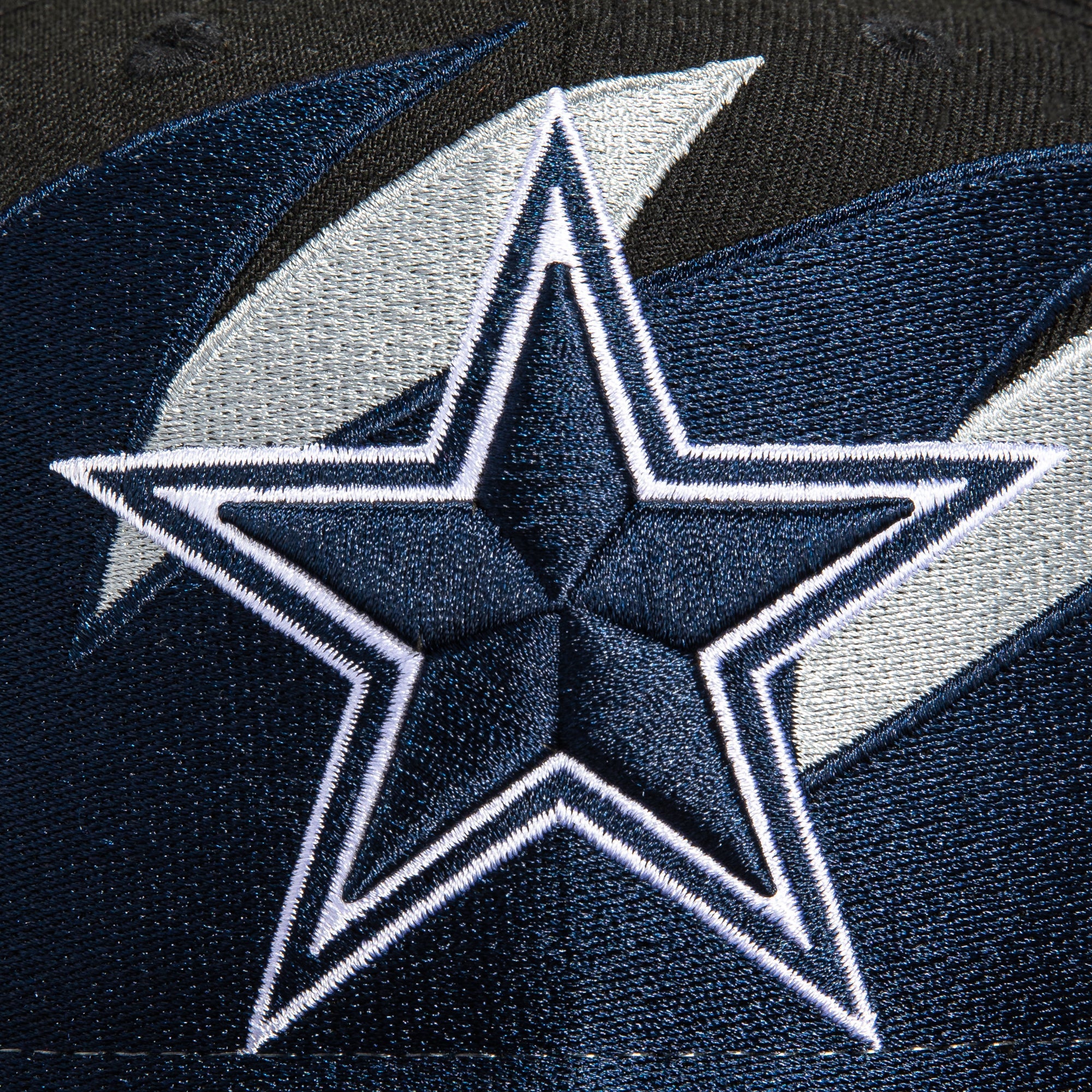 This New Era Dallas Cowboys SharkTooth 1993 Super Bowl 59FIFTY Fitted Hat was released by Hat Club. The fitted has a black six panel structured high crown, fabric squatchee button and brim with a grey undervisor. The front panel features a shark tooth pattern with the Dallas Cowboys logo embroidery. The left panel includes the New Era logo embroidery and the official NFL shield on the rear crown.