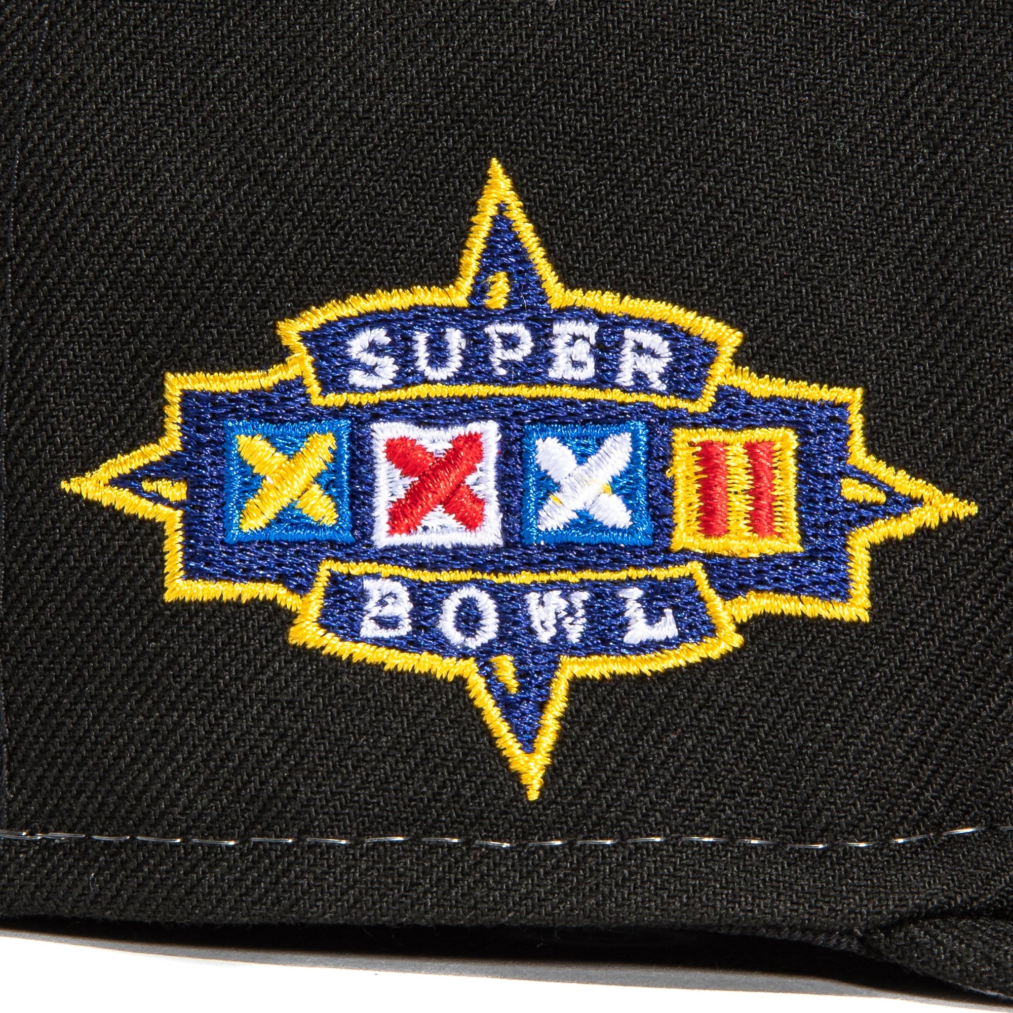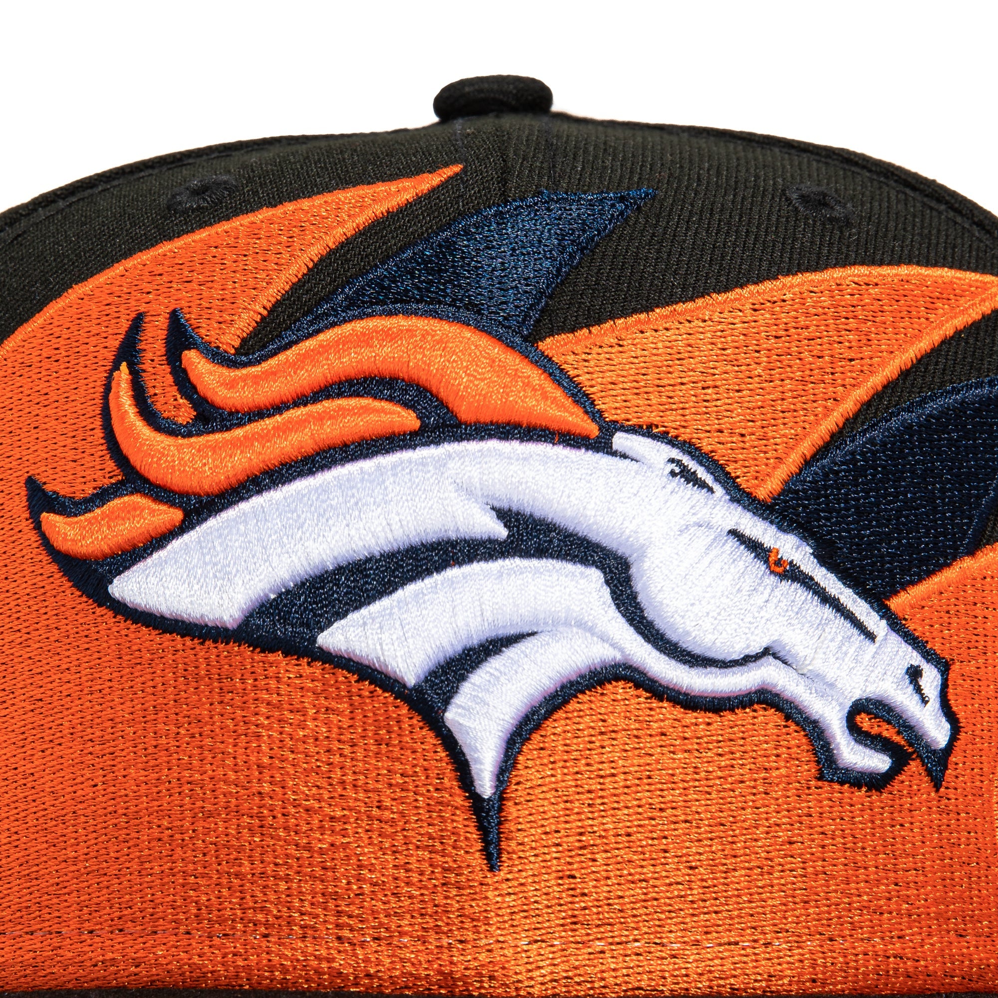 This New Era Denver Broncos SharkTooth 1998 Super Bowl 59FIFTY Fitted Hat was released by Hat Club. The fitted has a black six panel structured high crown, fabric squatchee button and brim with a grey undervisor. The front panel features a shark tooth pattern with the Denver Broncos logo embroidery. The left panel includes the New Era logo embroidery and the official NFL shield on the rear crown.