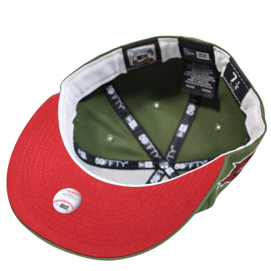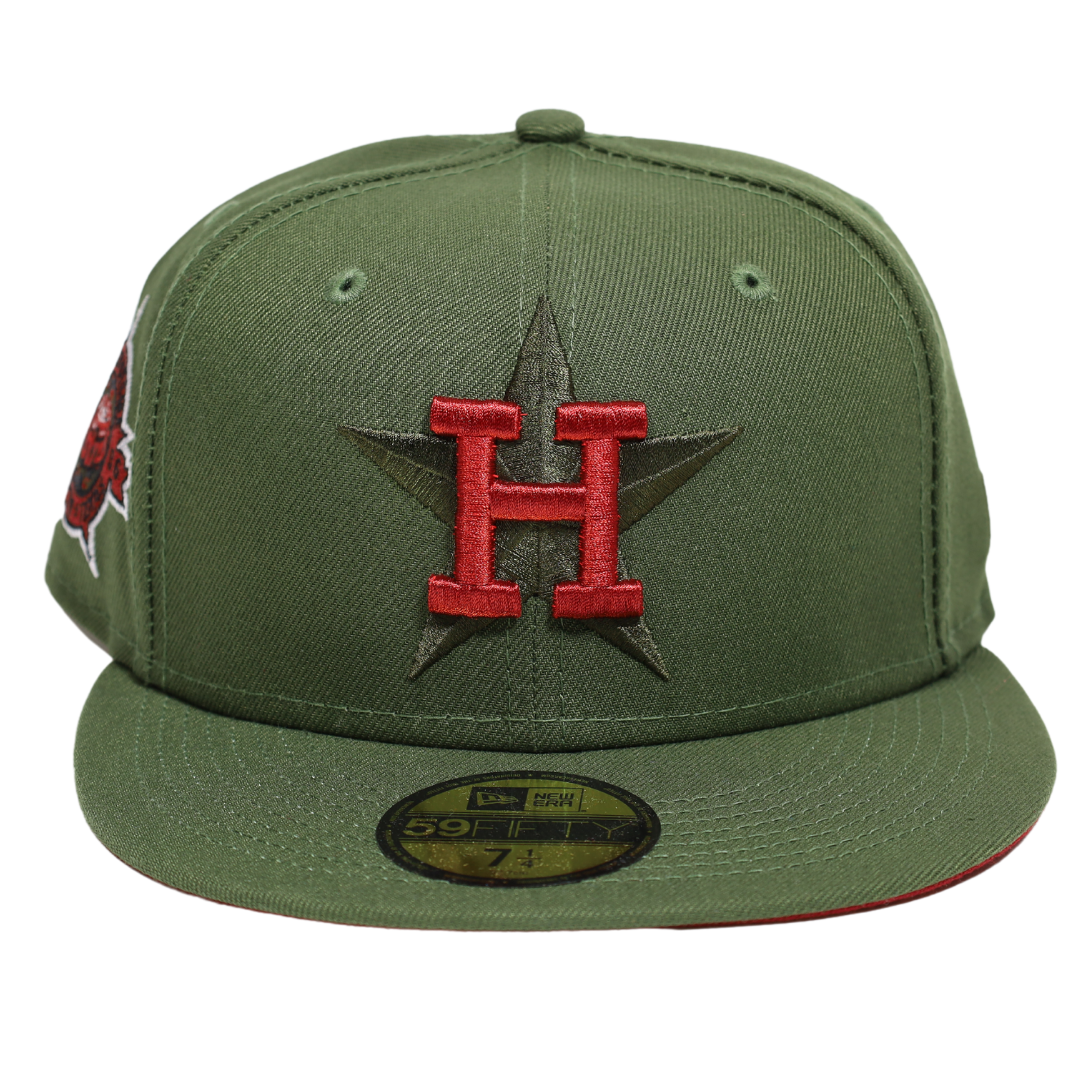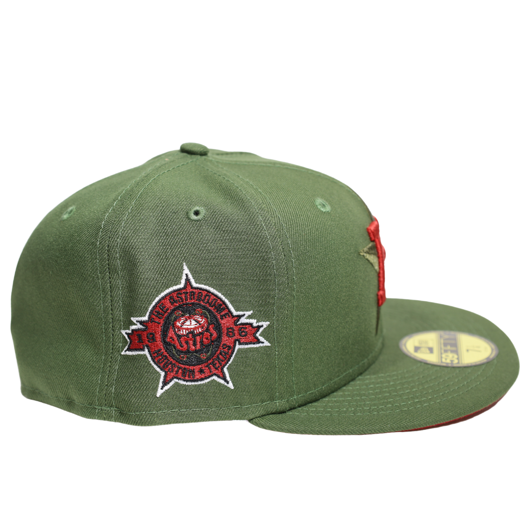 This New Era Houston Astros 1986 59FIFTY Fitted Hat has a six panel structured high crown and embroidered eyelets with a fabric squatchee button. The fitted cap has a flat bill with a sweatband. The front panel features the Houston Astros logo embroidery.