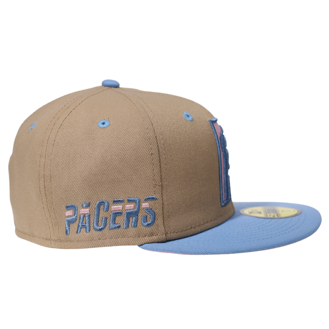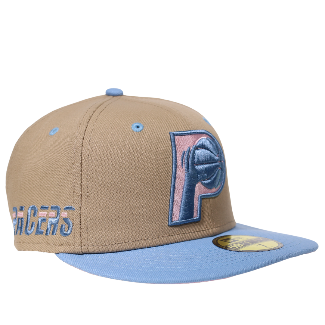 This New Era Indiana Pacers Classic 59FIFTY Fitted Hat has a six panel structured high crown and embroidered eyelets with a fabric squatchee button. The fitted cap has a flat bill with a sweatband. The front panel features the Indiana Pacers logo embroidery.