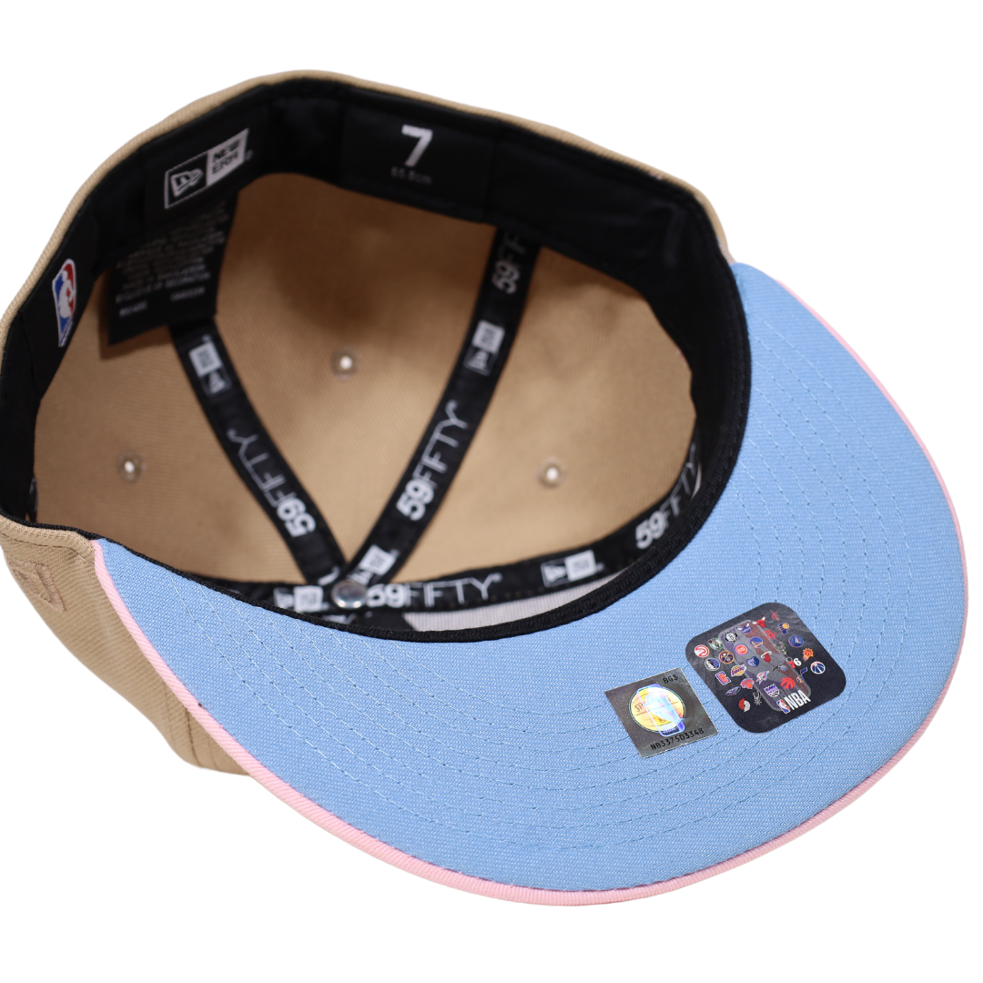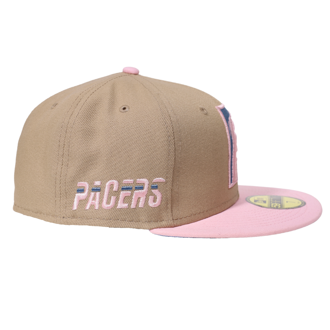 This New Era Indiana Pacers Classic 59FIFTY Fitted Hat has a six panel structured high crown and embroidered eyelets with a fabric squatchee button. The fitted cap has a flat bill with a sweatband. The front panel features the Indiana Pacers logo embroidery.