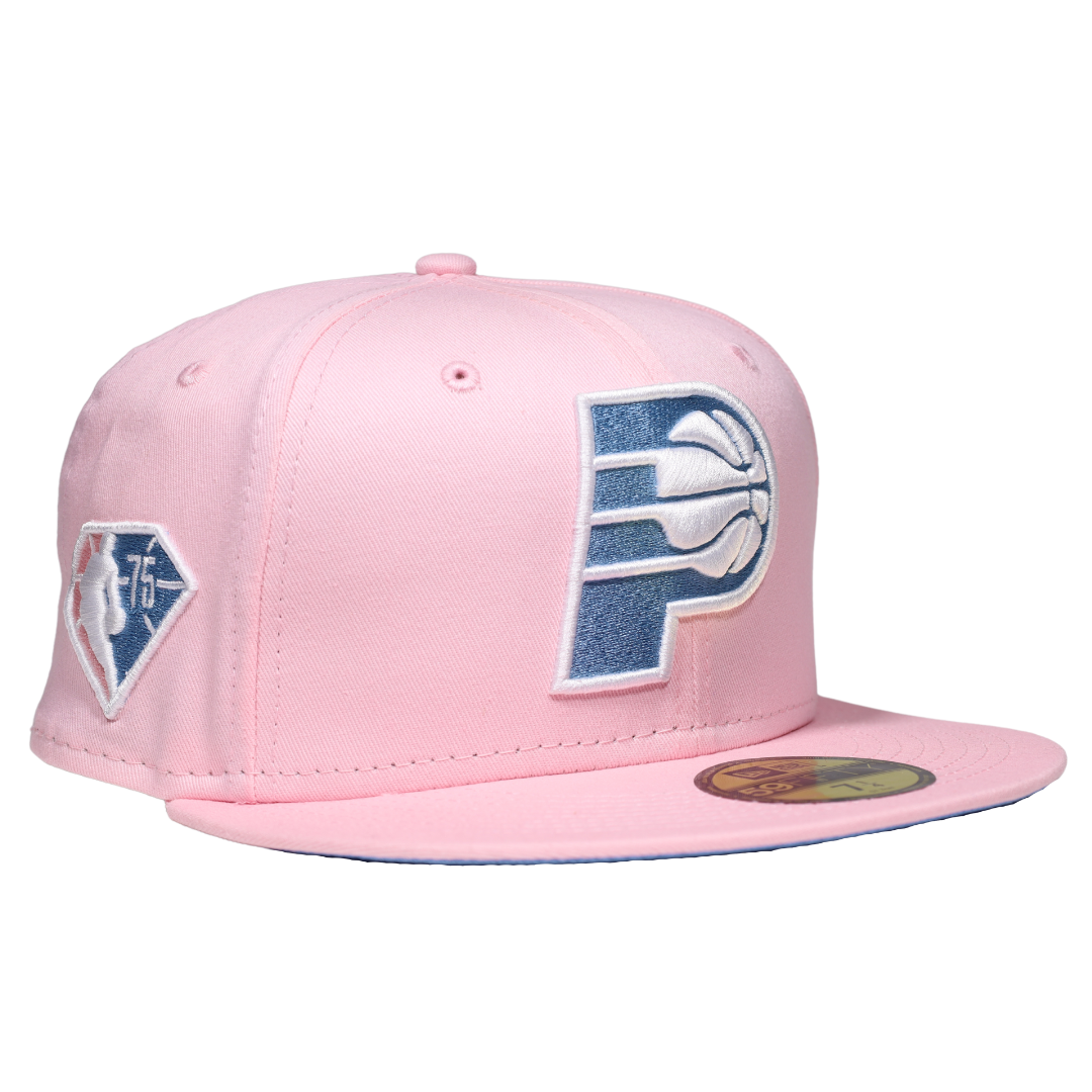 This New Era Indiana Pacers Nba 75Th Anniversary 59FIFTY Fitted Hat has a six panel structured high crown and embroidered eyelets with a fabric squatchee button. The fitted cap has a flat bill with a sweatband. The front panel features the Indiana Pacers logo embroidery.