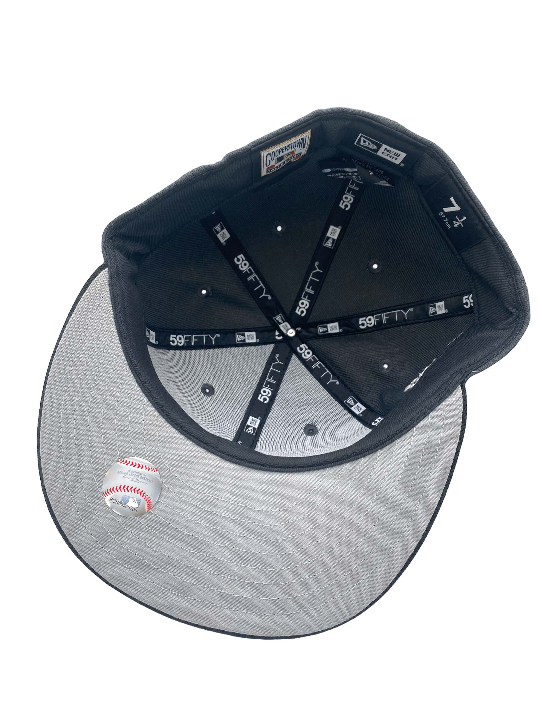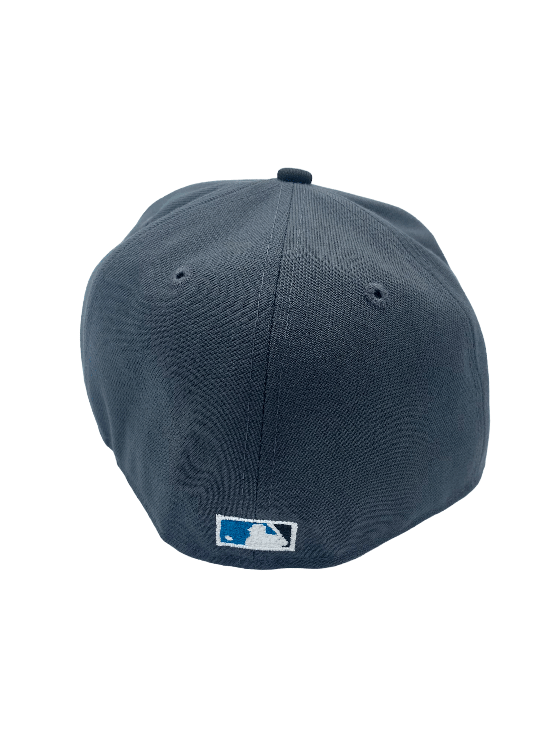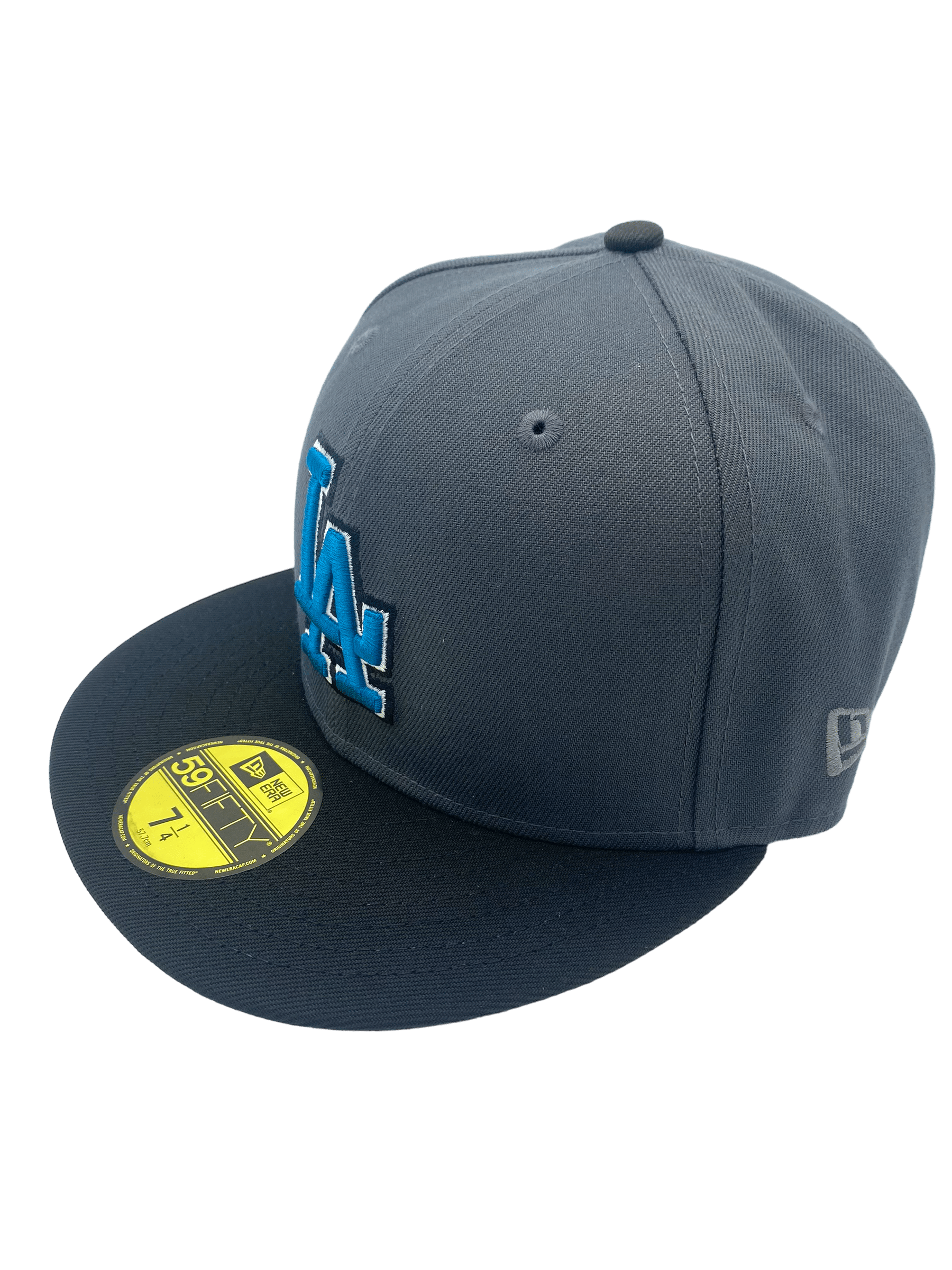 This Los Angeles Dodgers 59FIFTY fitted hat was released by Pro Image Sports. The fitted has a graphite six panel structured high crown and embroidered eyelets with a black flat brim, fabric squatchee button and a grey undervisor. The front panel features a blue threaded Los Angeles Dodgers logo embroidery with a 40th Anniversary side patch on the right panel. The left panel of the fitted displays the New Era logo and the official MLB Batterman embroidery on the rear crown.