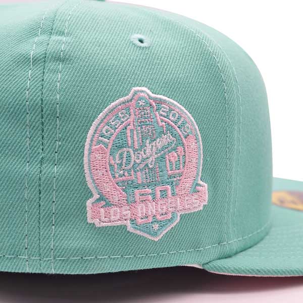 New Era Los Angeles Dodgers Mint 60th Anniversary Pink Undervisor 59FIFTY Fitted Hat