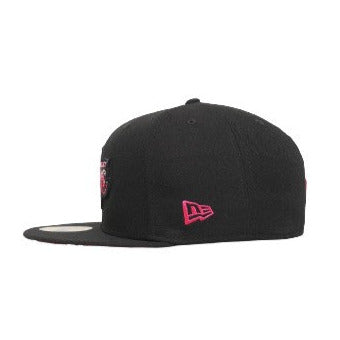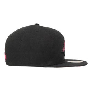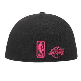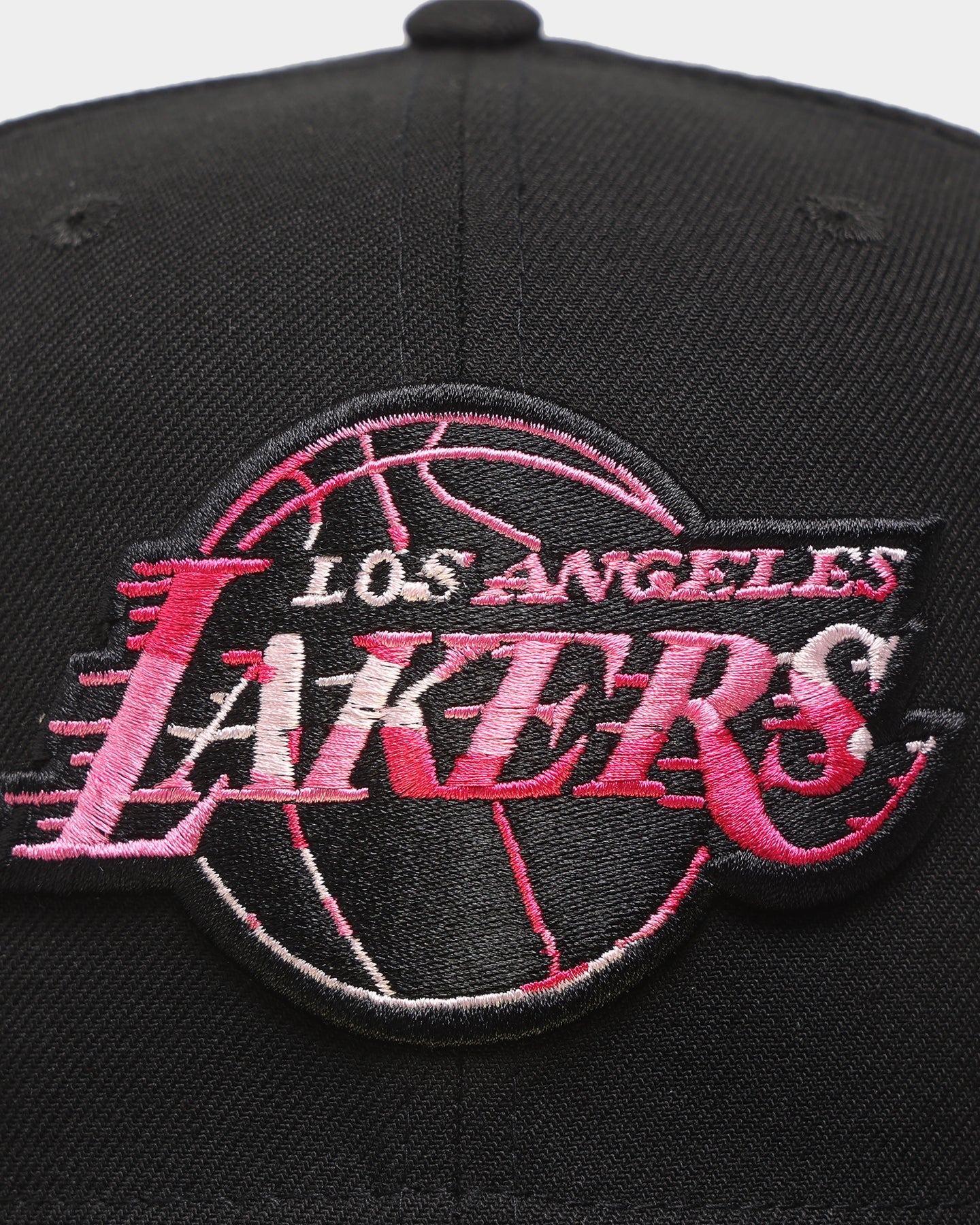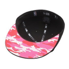 This New Era Los Angeles Lakers 'Pink Camo' 59FIFTY Fitted Hat has a black six panel structured high crown, eyelets, squatchee button and brim with a pink camouflage undervisor and black sweatband. The front panel features the NBA team logo embroidery.
