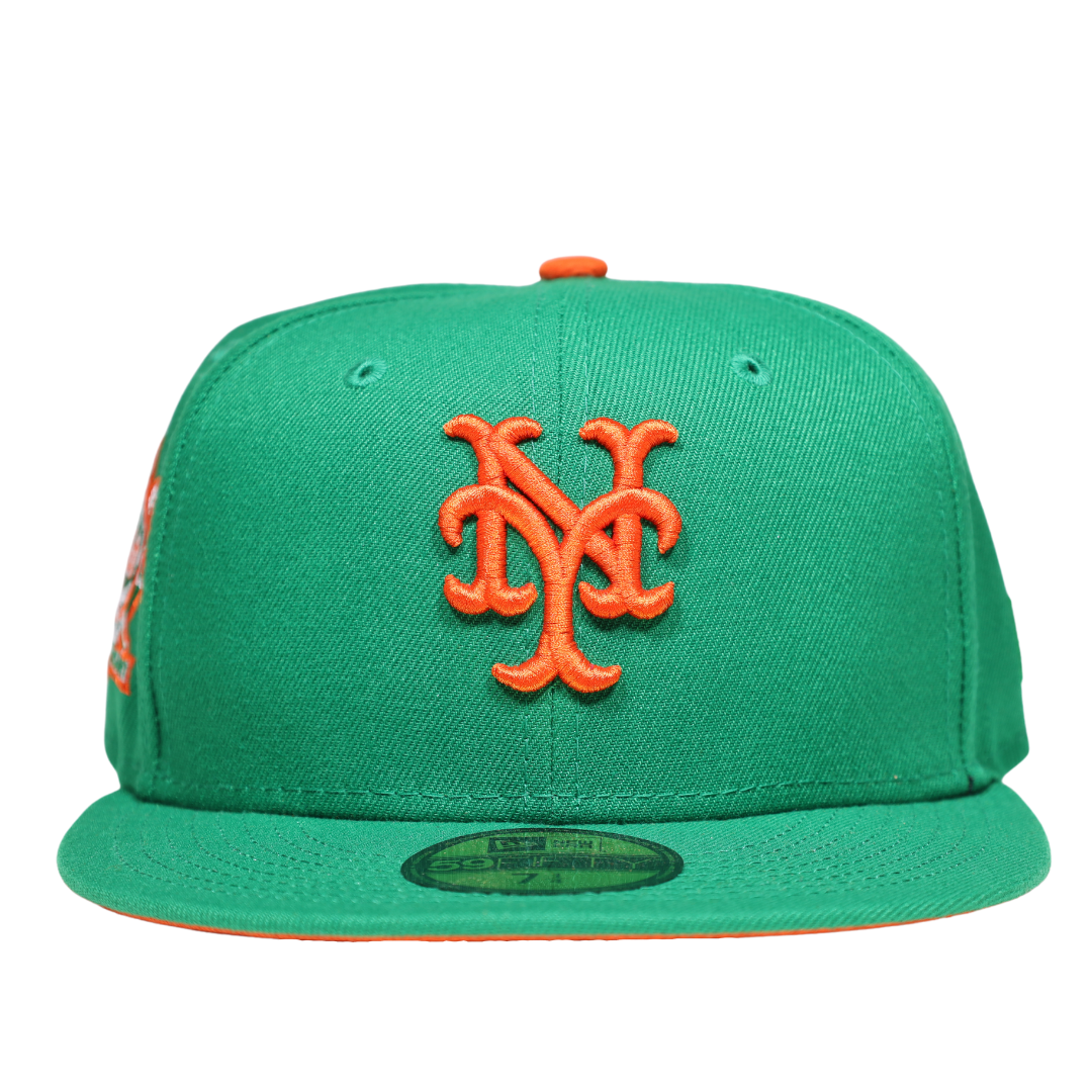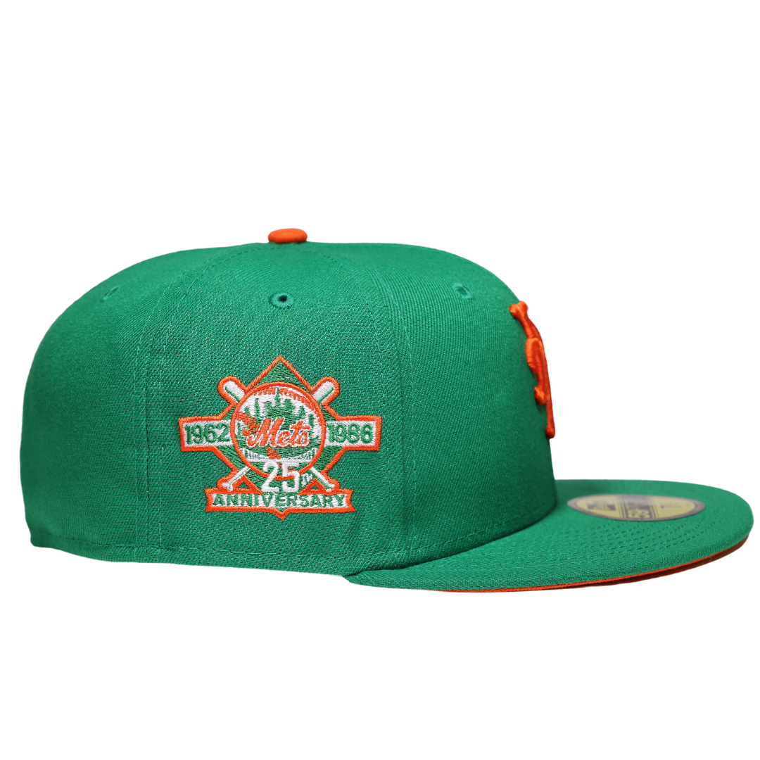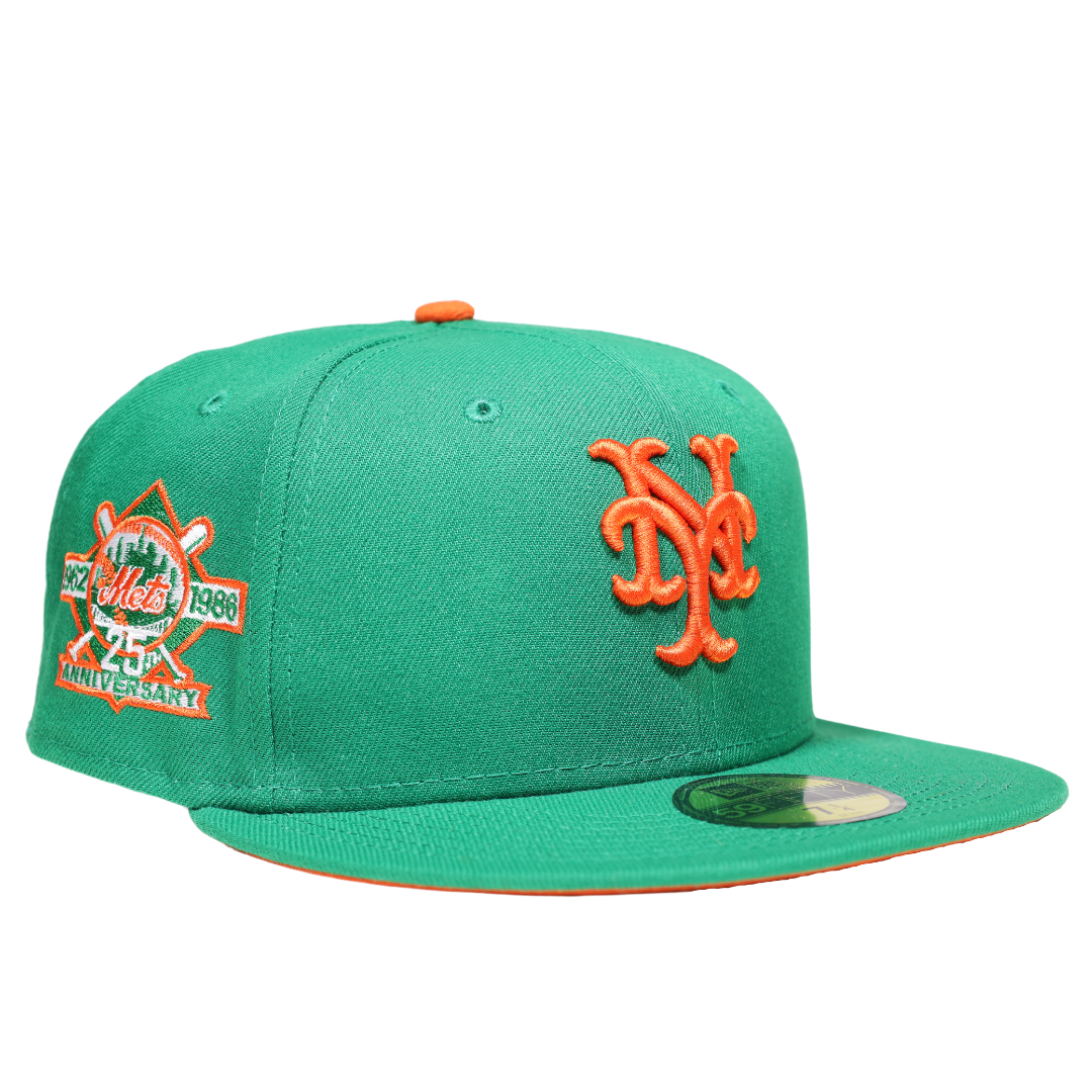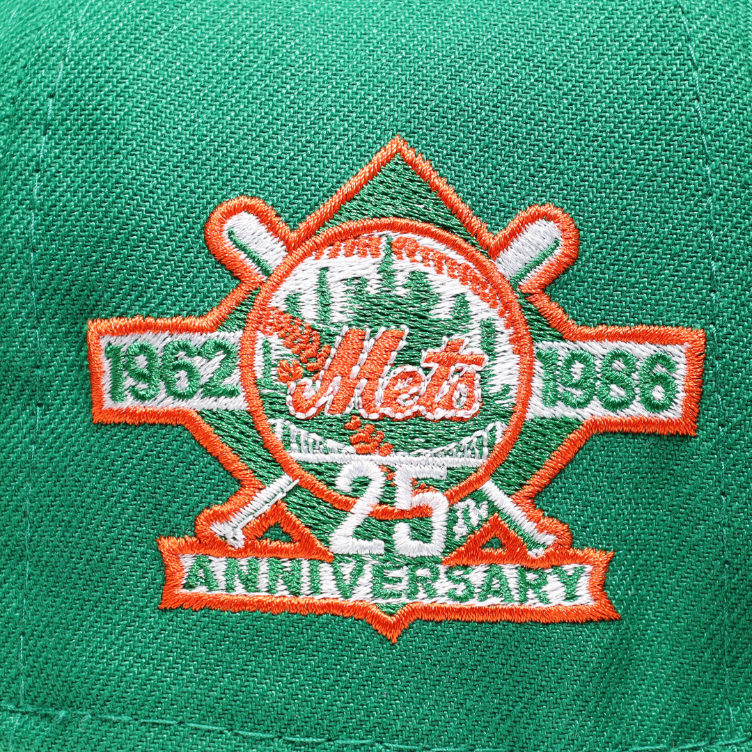 This New Era New York Mets 25Th Anniversary 59FIFTY Fitted Hat has a six panel structured high crown and embroidered eyelets with a fabric squatchee button. The fitted cap has a flat bill with a sweatband. The front panel features the New York Mets logo embroidery.