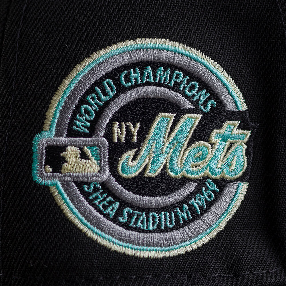New Era New York Mets Black/Crystal 1969 World Champions Mint Undervisor 59FIFTY Fitted Hat
