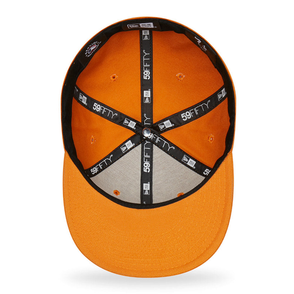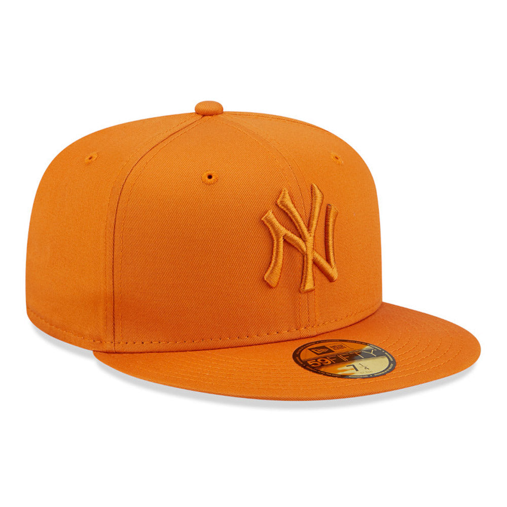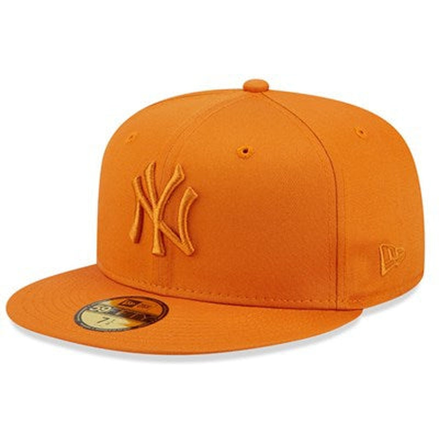 This New York Yankees fitted hat was released by FAM. The fitted has a orange six panel structured high crown and embroidered eyelets with a orange fabric squatchee button. The flat bill of the cap is orange with the same color undervisor and black sweatband. The front panel features the New York Yankees logo embroidery. The left panel of the fitted displays the New Era logo and the official MLB Batterman logo embroidery on the rear crown.