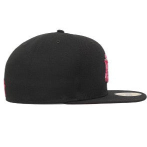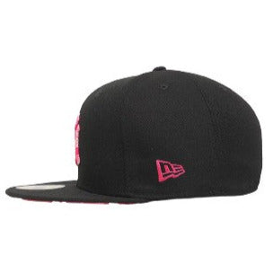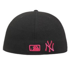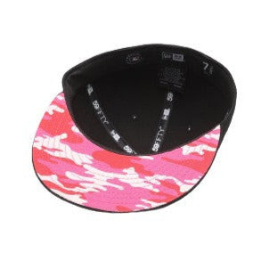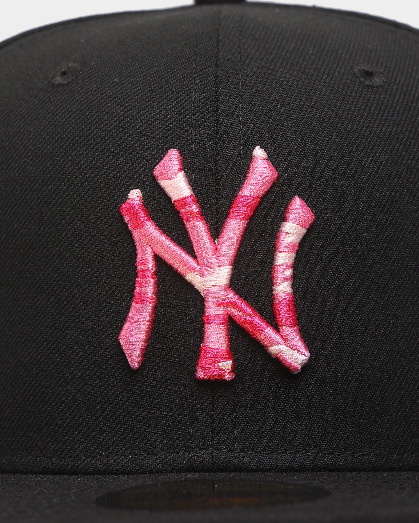 This New Era New York Yankees 'Pink Camo' 59FIFTY Fitted Hat has a black six panel structured high crown, eyelets, squatchee button and brim with a pink camouflage undervisor and black sweatband. The front panel features the MLB team logo embroidery.