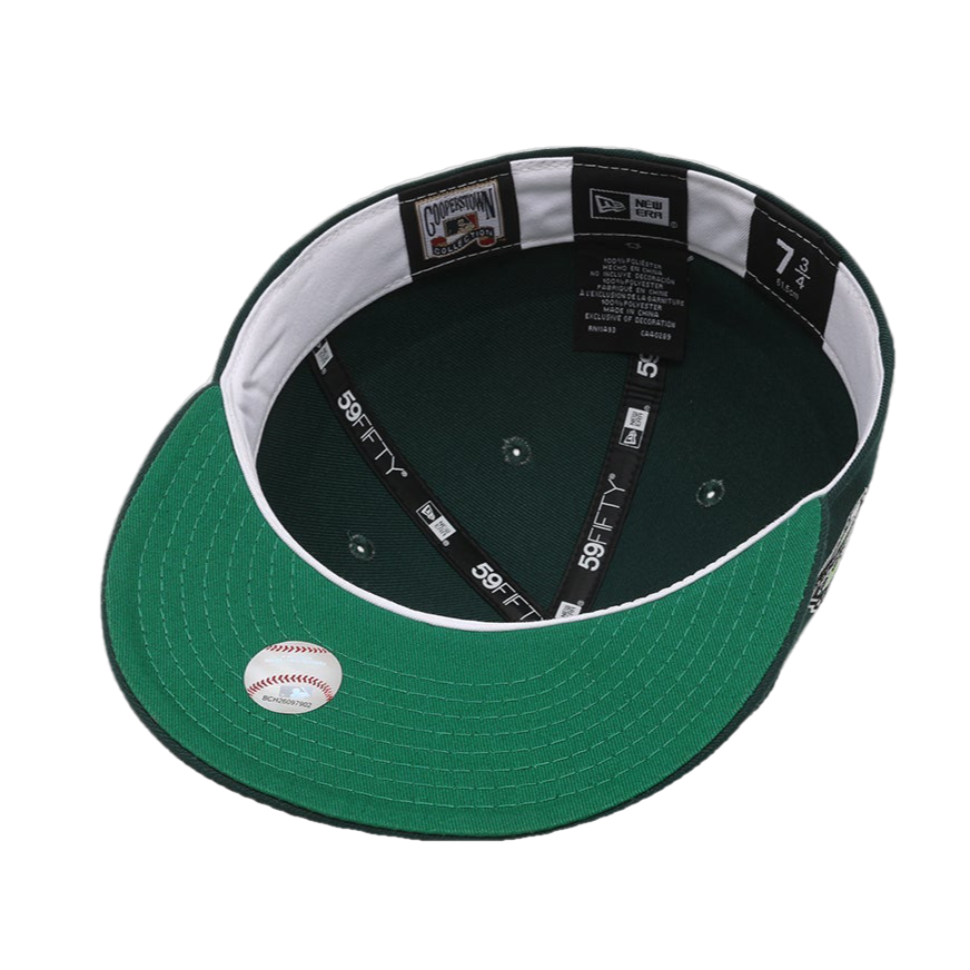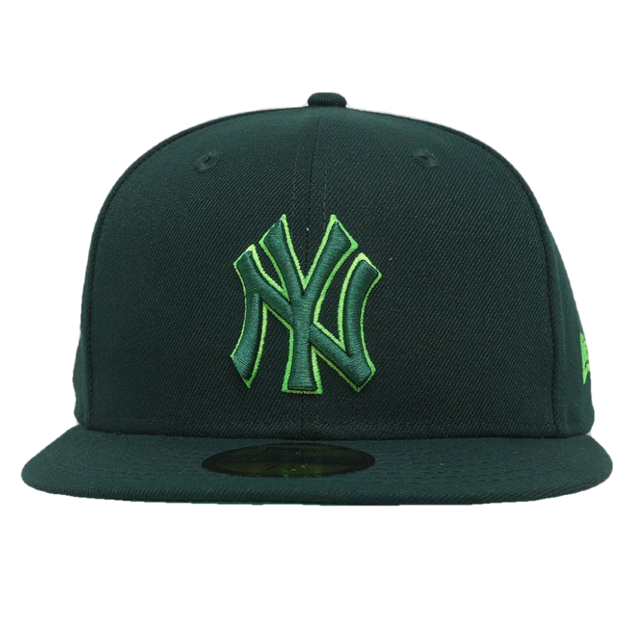 This New Era New York Yankees 'Christmas Tree' Green 59FIFTY Fitted Hat was released by Culture Kings. The Christmas Tree fitted has a dark green six panel structured high crown, embroidered eyelets and fabric squatchee button. The fitted has a dark green flat visor with a kelly green undervisor. The front panel features the New York Yankees logo embroidered in green stitching. The left panel of the fitted displays the New Era logo and the official MLB logo embroidery on the rear crown.