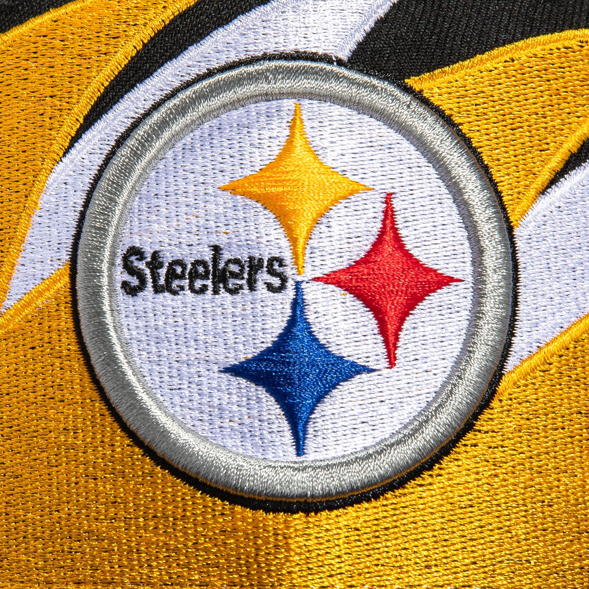 This New Era Pittsburgh Steelers SharkTooth 1980 Super Bowl 59FIFTY Fitted Hat was released by Hat Club. The fitted has a black six panel structured high crown, fabric squatchee button and brim with a grey undervisor. The front panel features a shark tooth pattern with the Pittsburgh Steelers logo embroidery. The left panel includes the New Era logo embroidery and the official NFL shield on the rear crown.