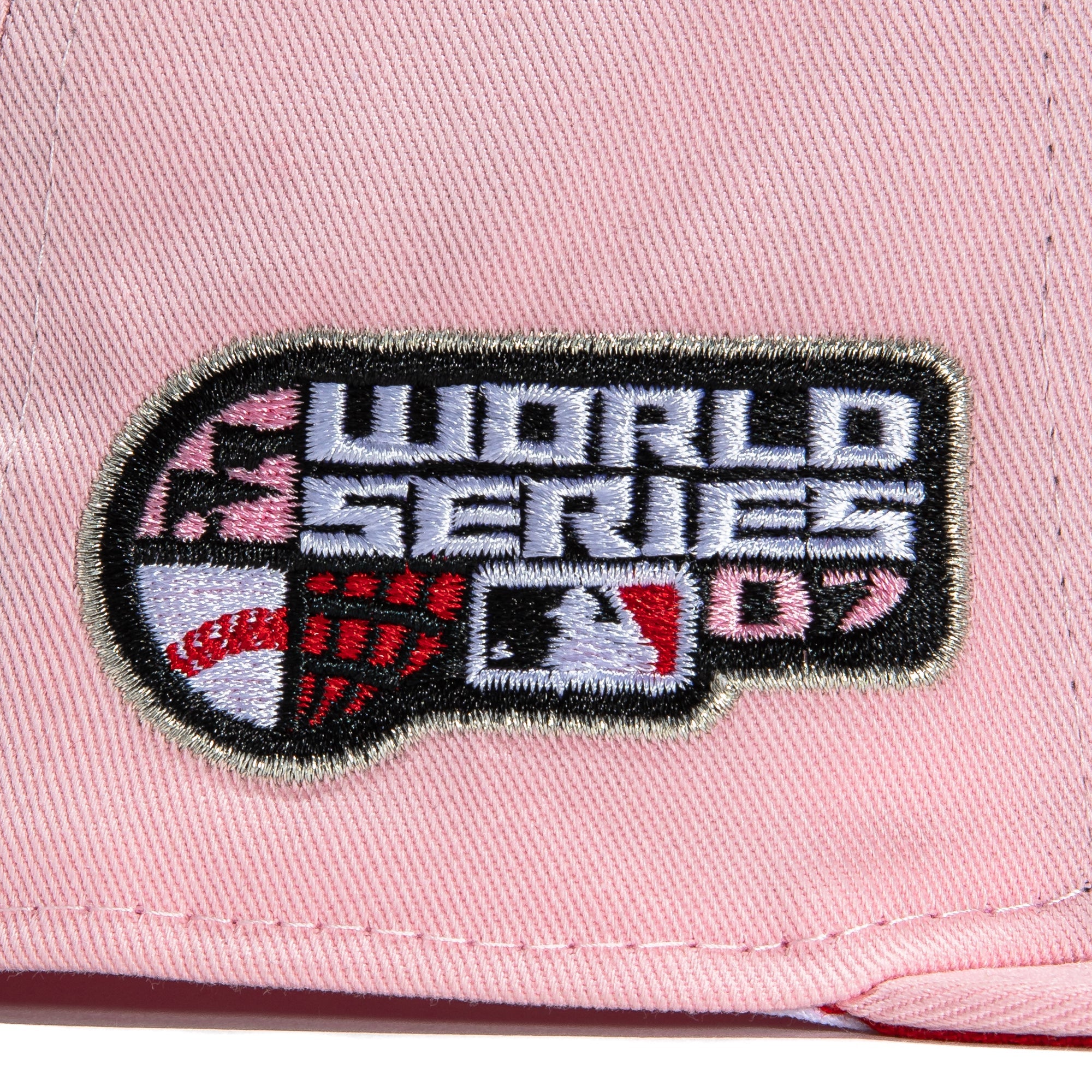 This New Era New Era Strawberry Jam Boston Red Sox 2007 World Series 59FIFTY Fitted Hat was released by Hat Club. The fitted features a soft pink six panel structured high crown, embroidered eyelets and fabric squatchee button. The flat bill of the fitted is also soft pink with a red undervisor and white sweatband. The front panel includes the Boston Red Sox logo embroidery and a side patch on the right-wear side.