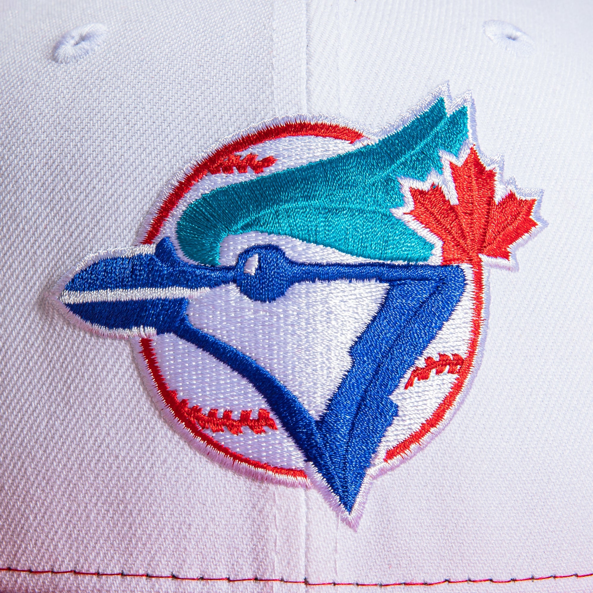 This New Era Toronto Blue Jays 20th Anniversary Trucker Rail 2022 59FIFTY Fitted Hat is a Hat Club exclusive. The fitte has a split white and red six panel structured high crown and embroidered eyelets with a red fabric squatchee button. The fitted cap also has a red flat bill with a grey undervisor. The front panel features the Toronto Blue Jays logo embroidery and a 20th Anniversary side patch embroidery on the right panel. The left panel of the fitted displays the New Era logo and the official MLB logo embroidery on the rear crown.