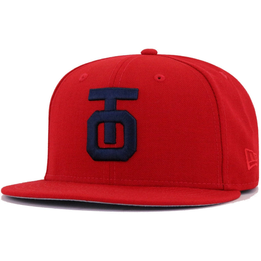 This New Era Tulsa Oilers Scarlet 59FIFTY Fitted Hat has a scarlet red six panel structured high crown and embroidered eyelets with a scarlet red fabric squatchee button. The fitted cap also has a scarlet red flat bill. The front panel features the Tulsa Oilers logo embroidery. The left panel of the fitted displays the New Era logo and the official MiLB logo embroidery on the rear crown.