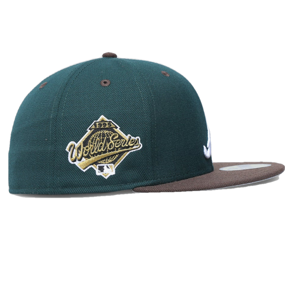 This New Era x Culture Kings Atlanta Braves 'Beef & Broccoli' 59FIFTY Fitted Hat was released by Culture Kings. The fitted cap features a six panel structured high crown and embroidered eyelets with a fabric squatchee button and flat bill. The fitted has an undervisor and a sweatband as well. The front panel includes the Atlanta Braves logo embroidery and the New Era logo embroidered on the left panel.