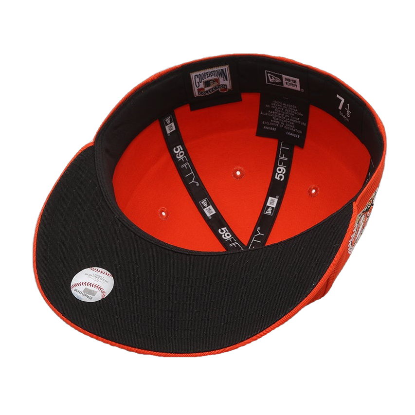 This New Era x Culture Kings Baltimore Orioles 'Pumpkin Orange' 59FIFTY Fitted Hat was released by Culture Kings. The fitted cap features a six panel structured high crown and embroidered eyelets with a fabric squatchee button and flat bill. The fitted has an undervisor and a sweatband as well. The front panel includes the Baltimore Orioles logo embroidery and the New Era logo embroidered on the left panel.