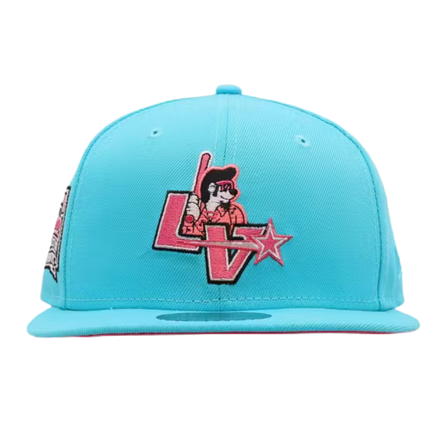 This New Era Las Vegas Stars 59FIFTY fitted hat was released by Culture Kings. The fitted has a vice blue six panel structured high crown, embroidered eyelets, fabric squatchee button and flat visor. The fitted has a fluorescent pink logo embroidery and undervisor with a Hometown Collection side patch on the right panel.