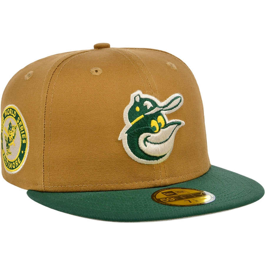 Lids Hat Drop is excited to bring unique and exclusive colorways to your favorite MLB team. This New Era Baltimore Orioles Desert Pine 59FIFTY fitted hat is a high crown hat structured with a flat rounded bill, threaded rivets, and a team patch to highlight the achievements. Find the look the fits your collection or wardrobe.