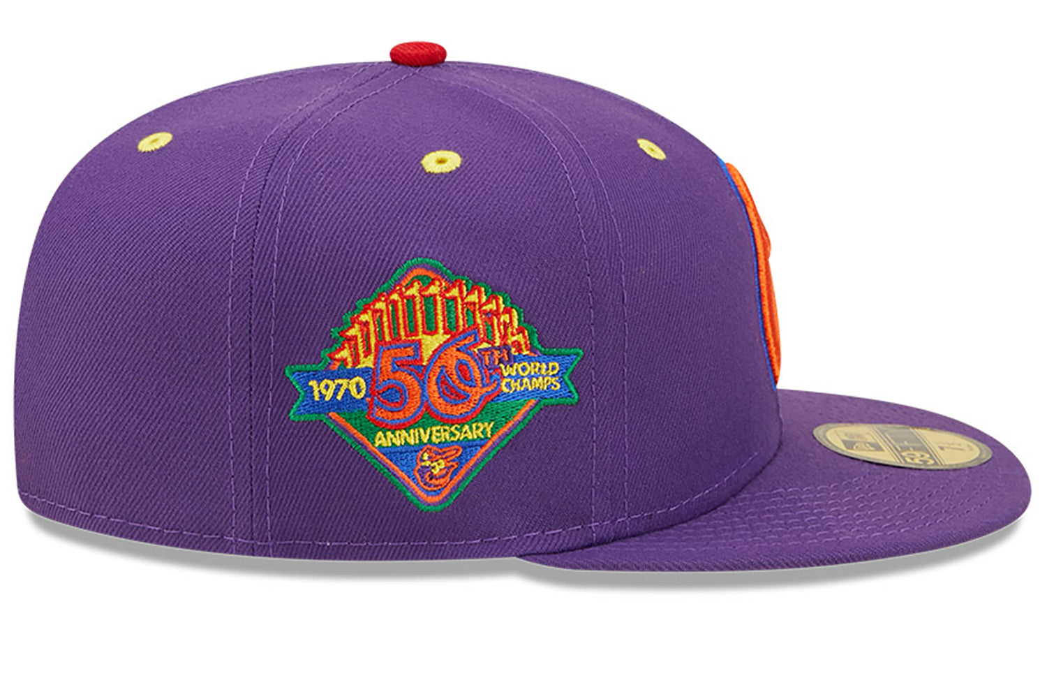 Lids Hat Drop is excited to bring unique and exclusive colorways to your favorite MLB team. This New Era Baltimore Orioles ROYGBIV 2.0 59FIFTY is a high crown hat, structured with a flat rounded bill, threaded rivets, and a team patch to highlight the achievements. Find the look that fits your collection or wardrobe.