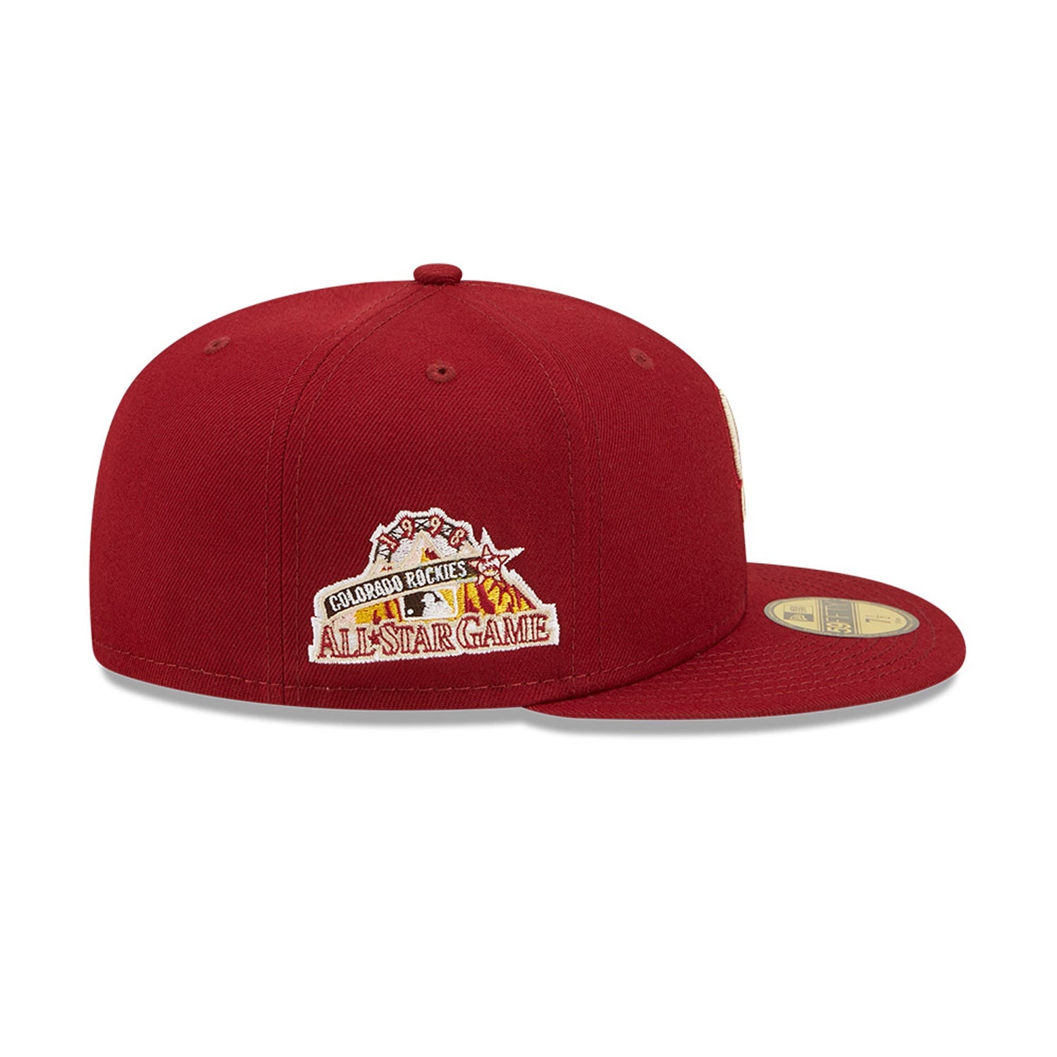 Lids Hat Drop is excited to bring unique and exclusive colorways to your favorite MLB team. This New Era Colorado Rockies Cardinal Sunshine 59FIFTY is a high crown hat is structured with a flat rounded bill, threaded rivets, and a team patch to highlight the achievements. Find the look that fits your collection or wardrobe.