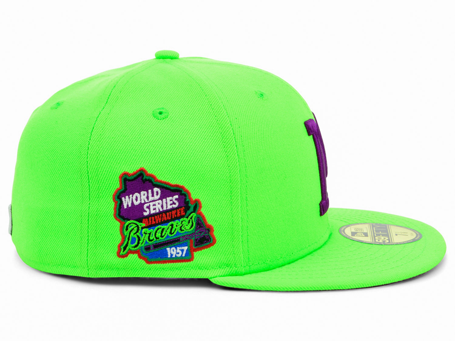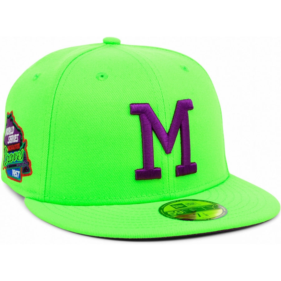 Your loyalty to the MLB shows no bounds, the Milwaukee Braves Laser 59FIFTY fitted cap says it all. This New Era high crown hat is structured with a flat rounded bill, threaded rivets, and the MLB logo in contrasting hues. Bring this unique and exclusive look to your collection today.