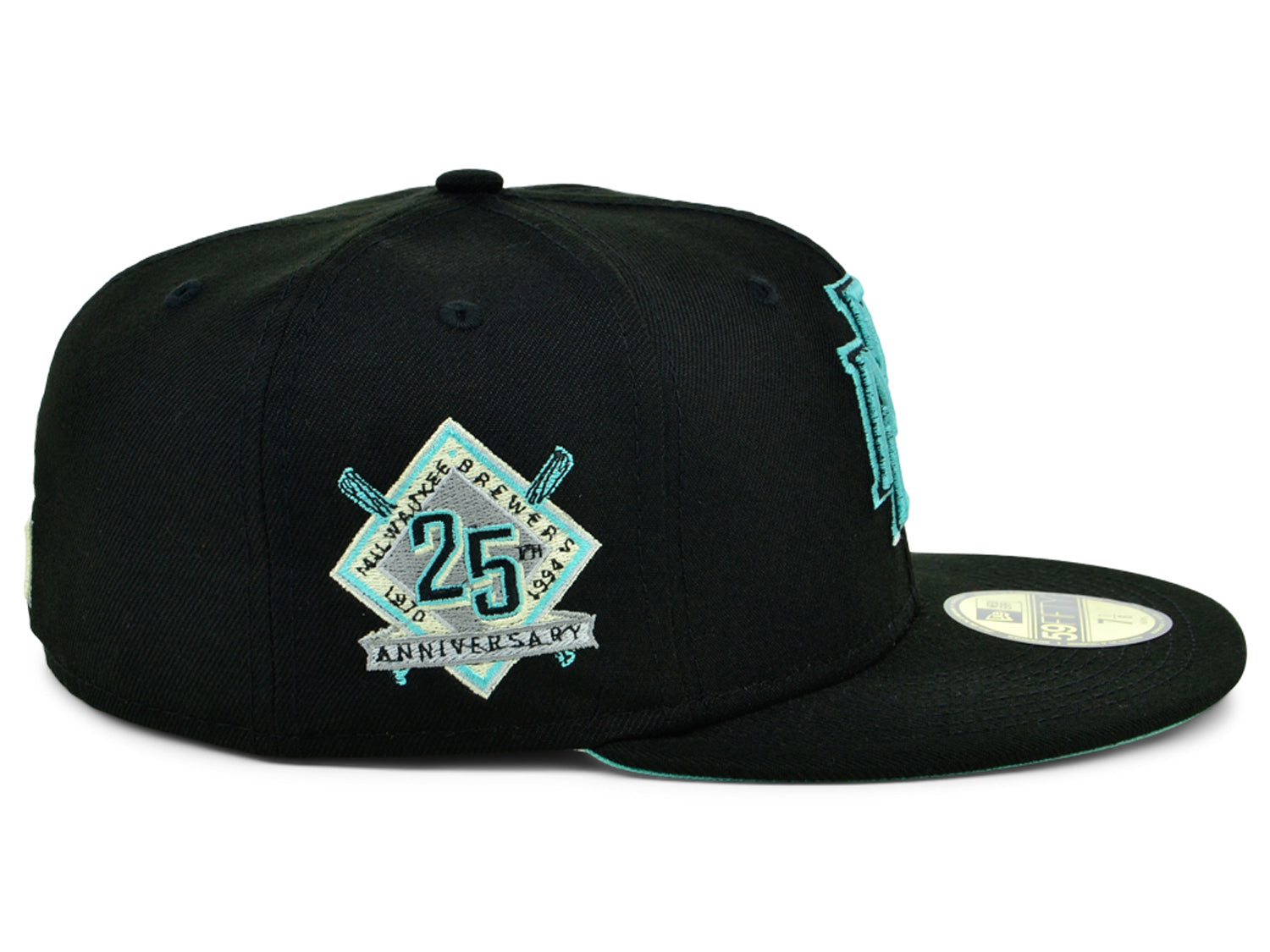 Milwaukee Brewers Black & Mint Fitted Hat